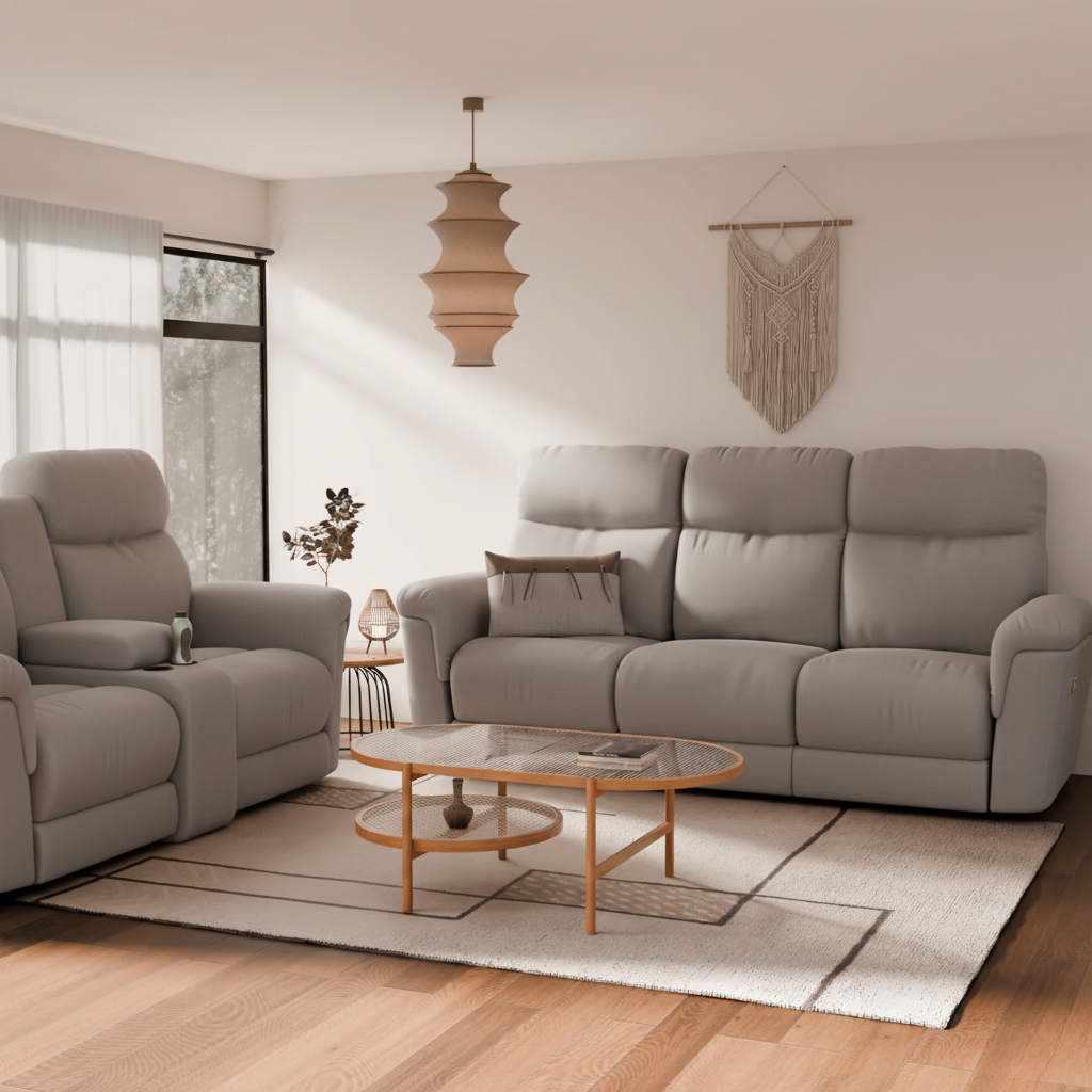 Indulge in your preferred relaxation method with the Kayle Fabric Recliner Sofa, be it through a manual or electric recline.