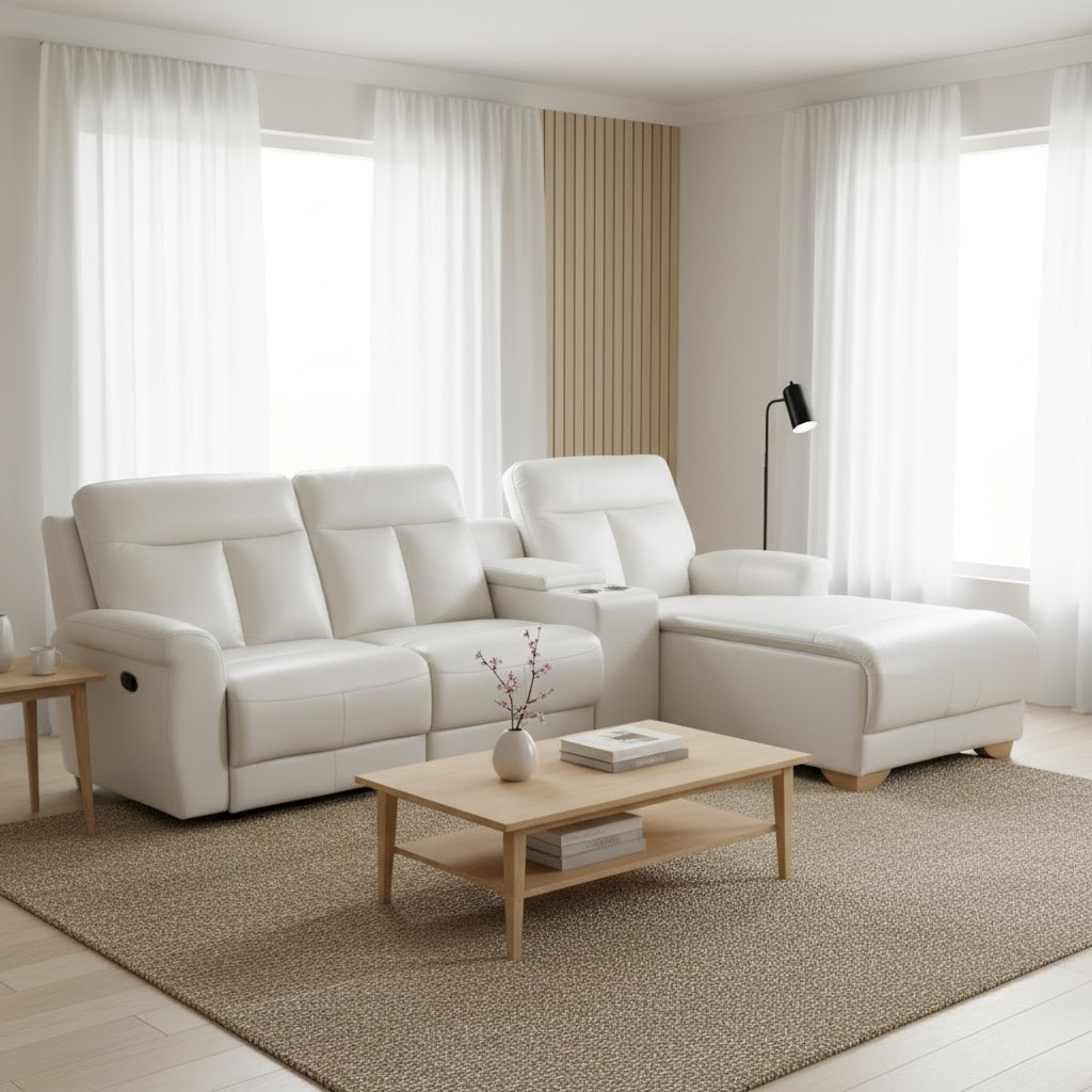 Regulus Genuine Leather Recliner L-Shaped Sofa