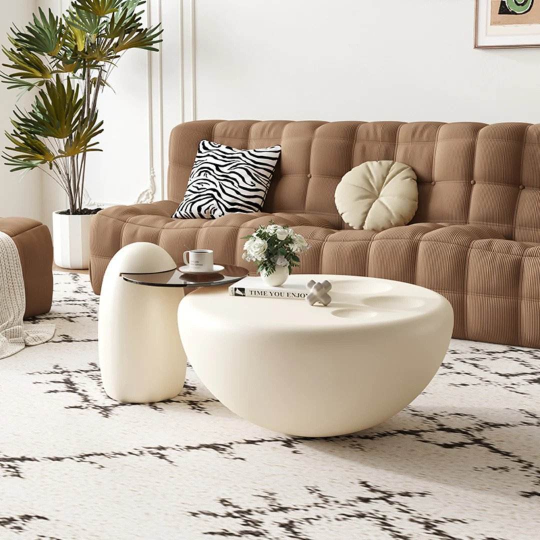 Are you craving a chic update for your living space? Check out the Nala Nesting Coffee Table, a sleek duo that solves space woes in style! The star is the side table with a classy glass top, complemented by the main coffee table painted in a soothing cream colour.