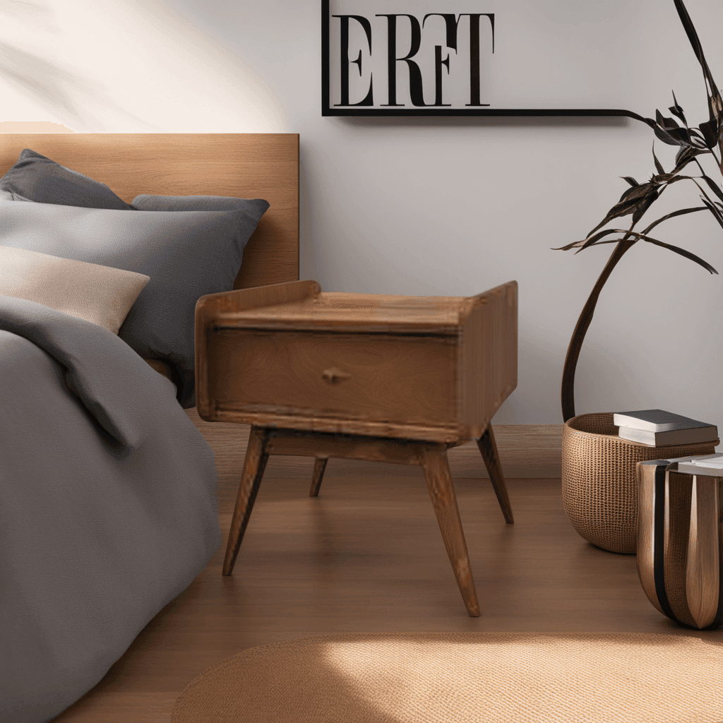 Transform your bedroom with the Birger Wooden Bedside Table. Featuring a sleek design with a rich wooden finish, this wooden bedside table effortlessly blends with any bedroom décor with its compact size that makes it perfect for small spaces, while the spacious tabletop provides ample room for your nightly essentials. The single drawer is ideal for keeping your reading glasses, books, or other personal items neatly organised and within easy reach.