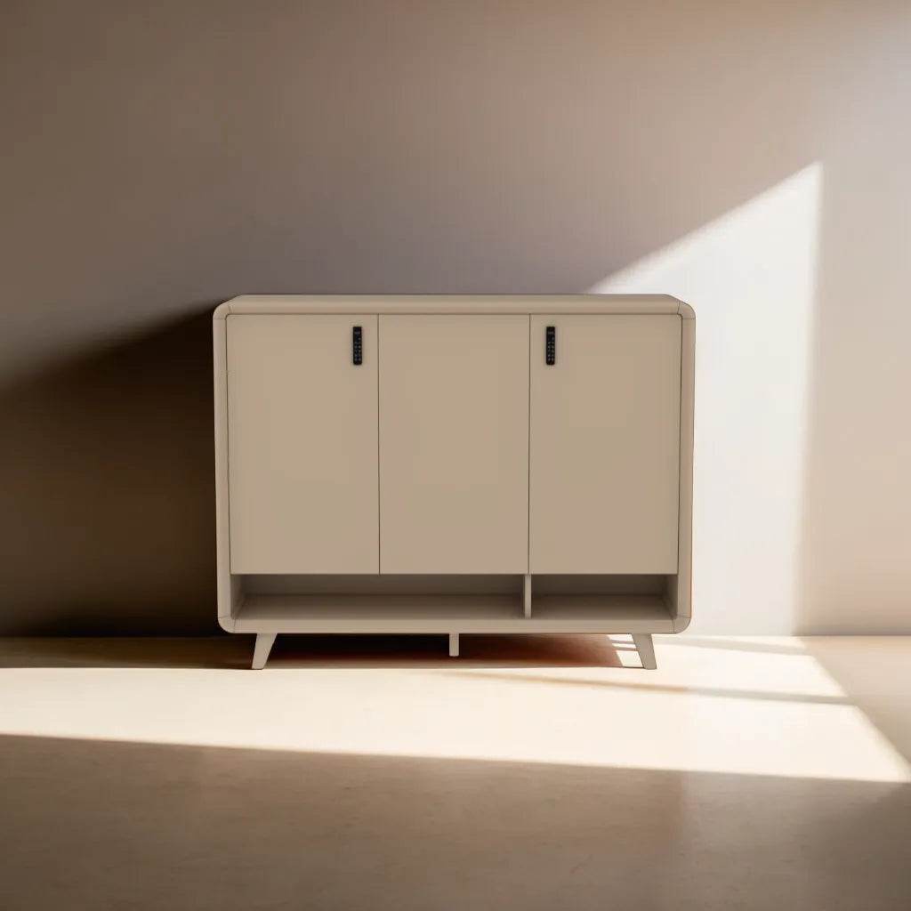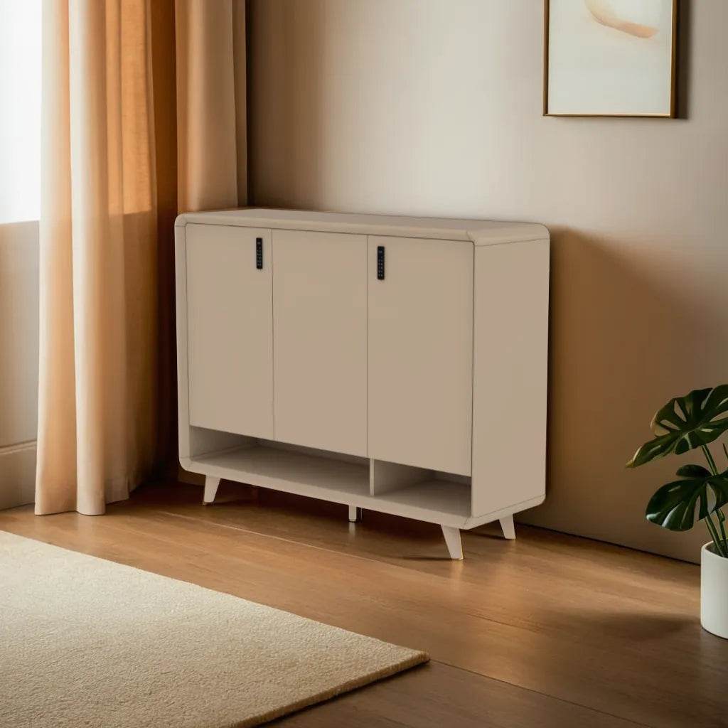 The Cruz II 3 Door Shoe Cabinet with Digital Lock is a sleek unit in khaki white and is not just a looker; it's got brains, thanks to its digital smart number lock. No more worrying about your favourite sneakers when you're not around! With six layers of shelves inside, there's heaps of space for every pair.