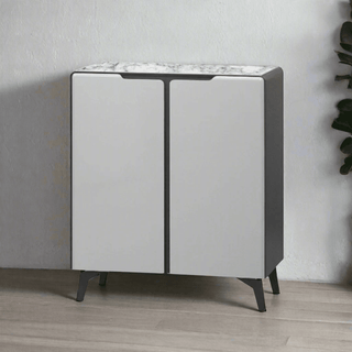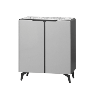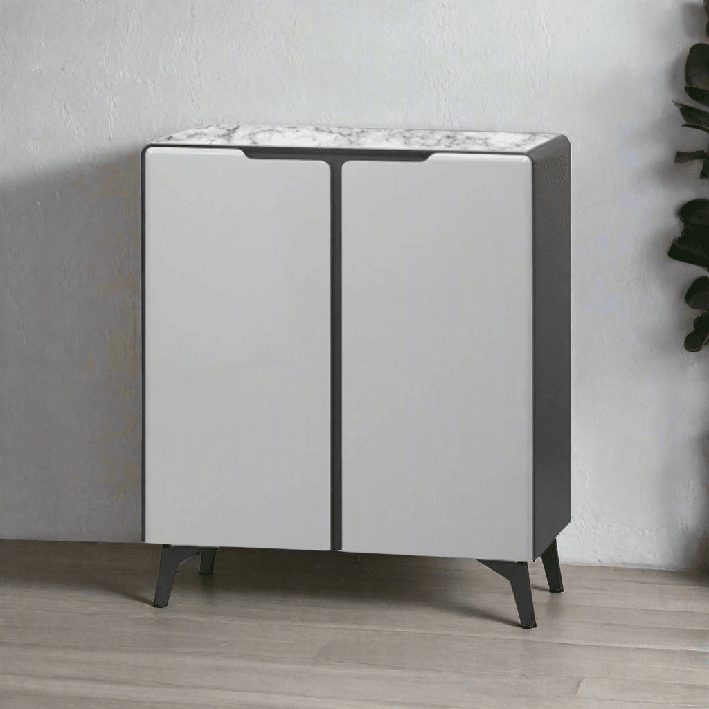 Designed for contemporary spaces, the Galcy 2-Door Shoe Cabinet combines functionality with a sleek aesthetic. Its grey finish, subtle door slits, and tempered glass top offer a sophisticated yet practical storage solution.