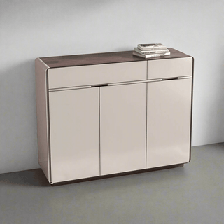 The Maura II 3 Door Shoe Cabinet offers a seamless blend of style and practicality. Designed with a sturdy MDF structure and a sophisticated wood veneer top, this cabinet enhances any modern or Scandinavian-inspired space. Its handleless drawers and legless design create a clean, uninterrupted silhouette.