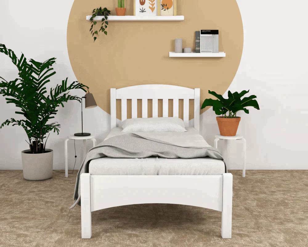 Maximise and beautify your limited space with‚ Elisee Wooden Bed. This solid wood bed frame boasts a minimalist elegance with its clean details and glossy white finish. Its curvy details make this piece look more lightweight and pleasing to the eye. You have the choice to add a single pull-out trundle bed for a leveled up space-saving.