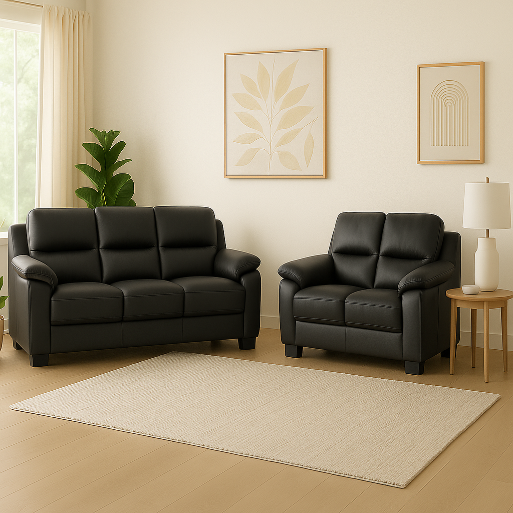 Level up your living room with this handsome Wilton Faux Leather Sofa. Made with high-quality premium leather, this sofa is an affordable yet luxurious addition to your home. It has high-resilience foam and a supportive spring system for medium-firm comfort and longevity.