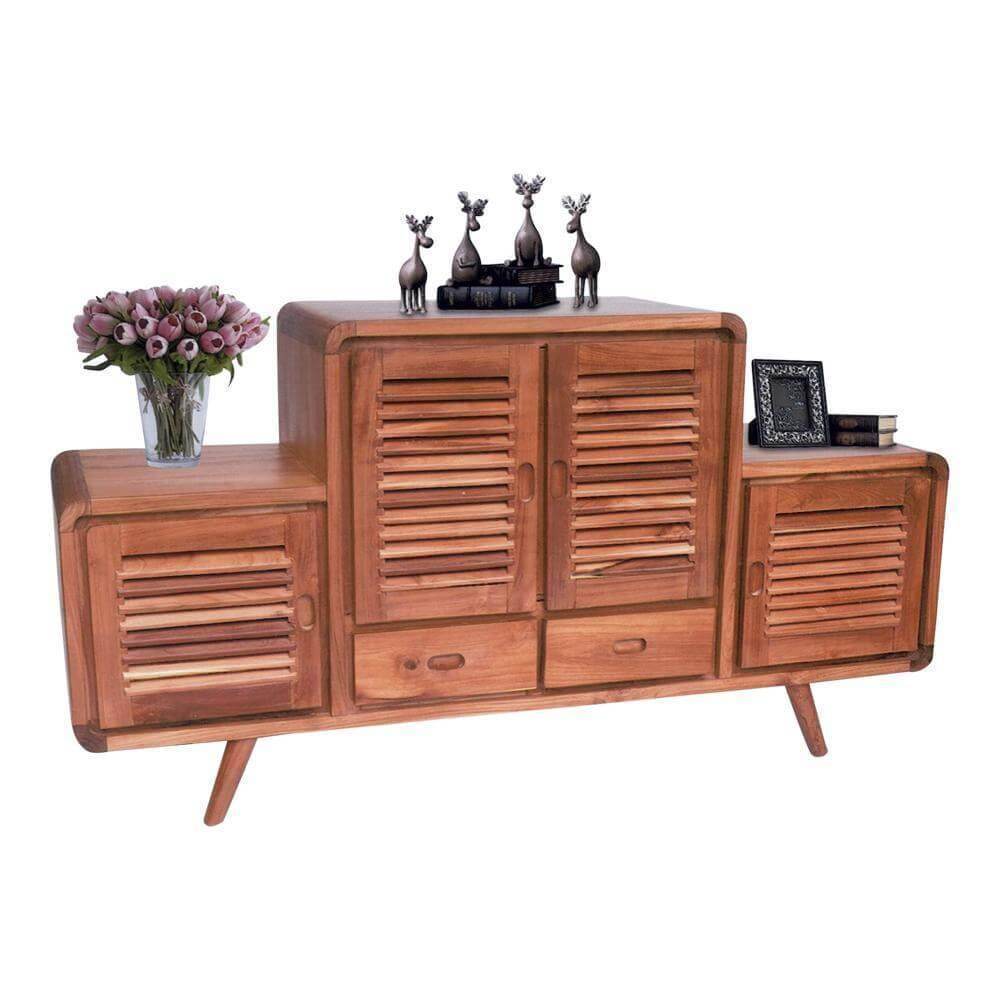 Crafted from rich teak wood, the Mira Teak Wood Buffet Hutch is a clutter-busting powerhouse with four doors and two drawers. These can help keep everything from your fancy china to those pesky piles of paperwork neatly tucked away.