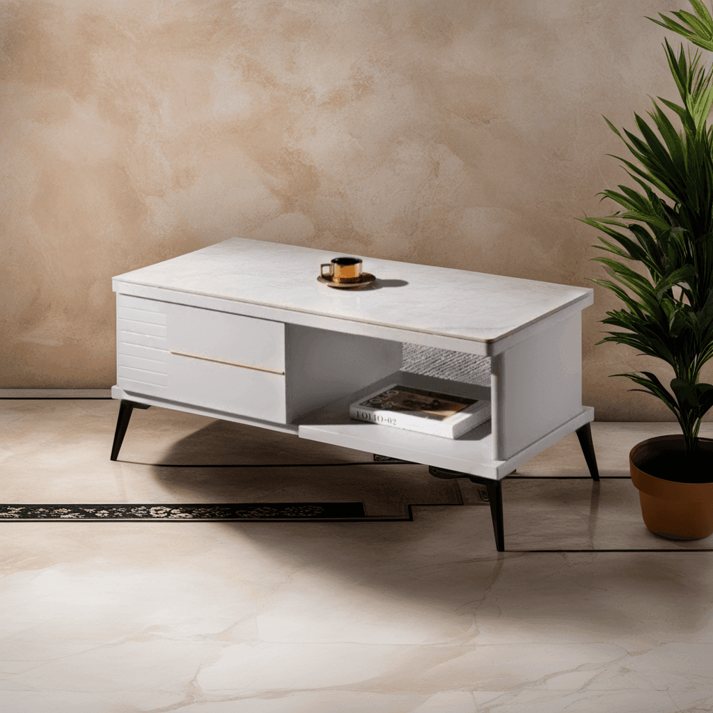 If you are looking for a functional coffee table as functional as it is fashionable, the Fable Polished Sintered Stone Coffee Table is definitely worth a look. Its top is made of polished sintered stone, which is stylish, super durable, and easy to clean. Spilt your morning kopi or evening teh? No worries, it's a quick wipe and is as good as new. But the real magic lies in the two drawers. They're perfect for stashing away all those little things that usually clutter up your space – think remote controls, magazines, or even your collection of coasters.