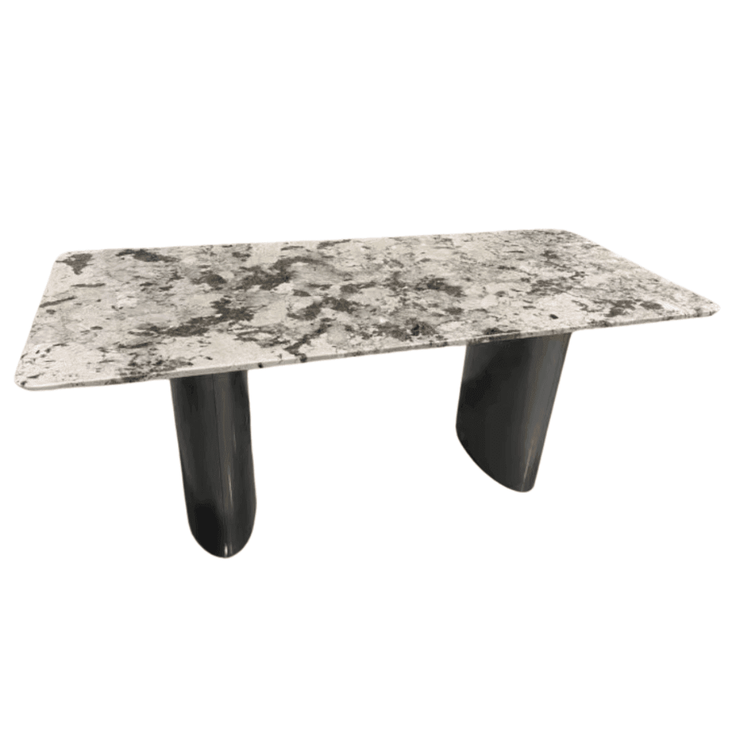 Elevate your dining experience with the Kassian Sintered Stone Dining Table, a striking blend of modern craftsmanship and natural elegance. Featuring a luxurious sintered stone tabletop with unique marble-like veining, it offers both timeless beauty and exceptional durability. Resting on sleek cylindrical pedestal legs, this table embodies contemporary sophistication while ensuring sturdy support.