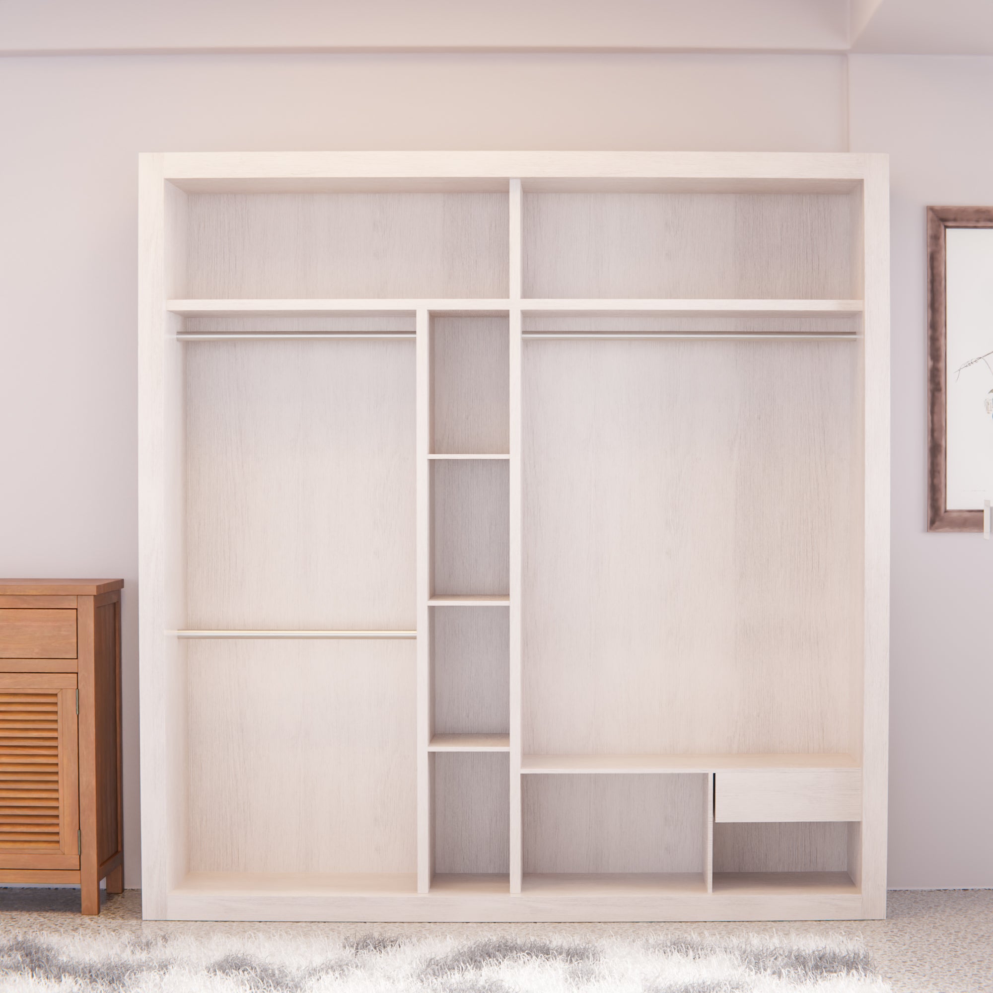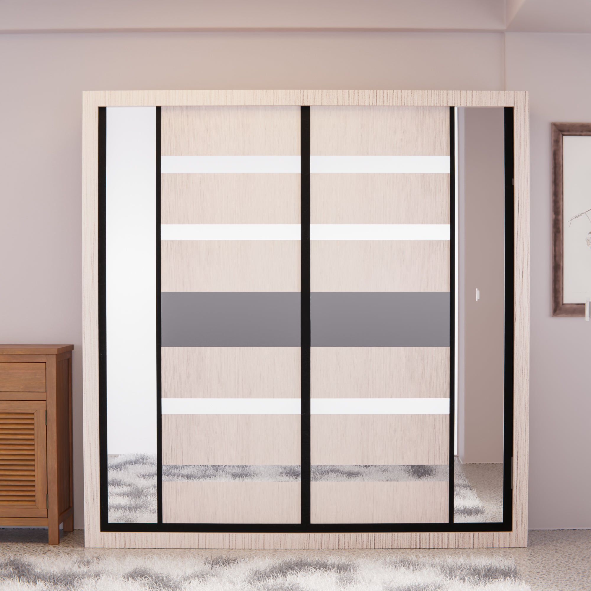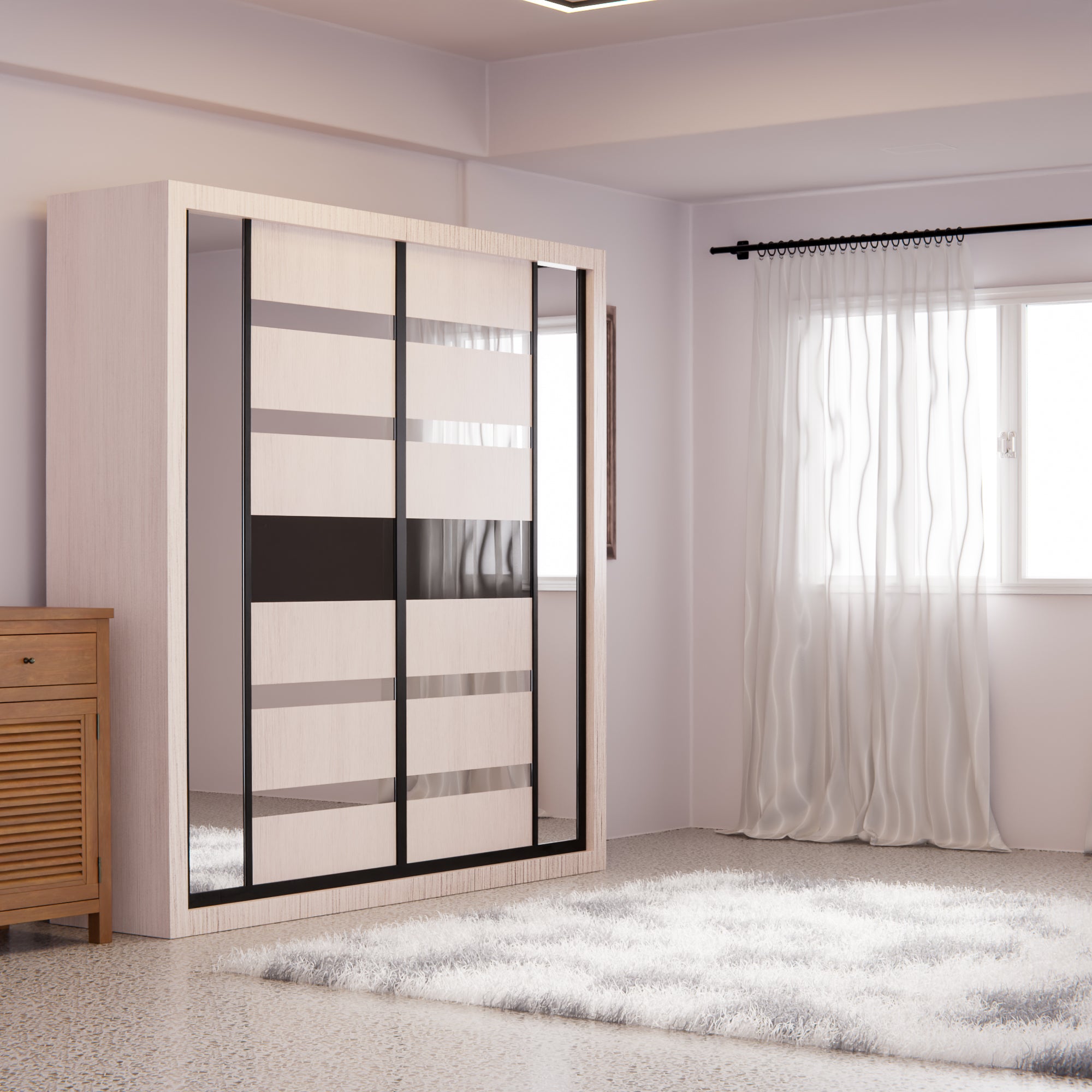 Maximize your bedroom space with the Ginnie Sliding Door Wardrobe, an elegant 8ft storage solution that combines style with functionality. Featuring smooth sliding doors that glide effortlessly, this wardrobe eliminates the need for swing-out clearance, making it perfect for compact rooms. The spacious interior accommodates ample clothing and accessories, while the sleek design complements any modern bedroom aesthetic. Built for durability and ease of access, the Ginnie wardrobe transforms how you organize and display your wardrobe essentials.