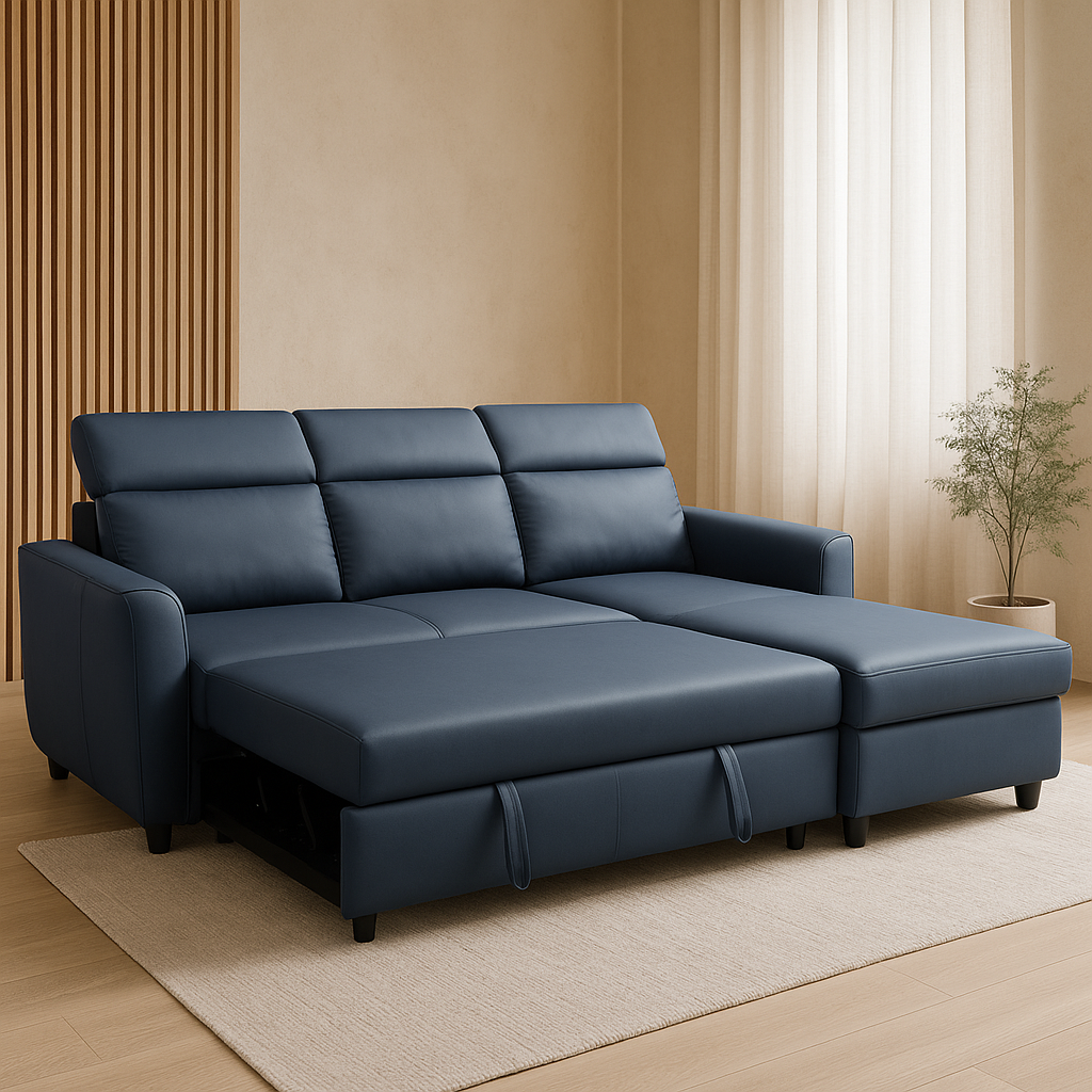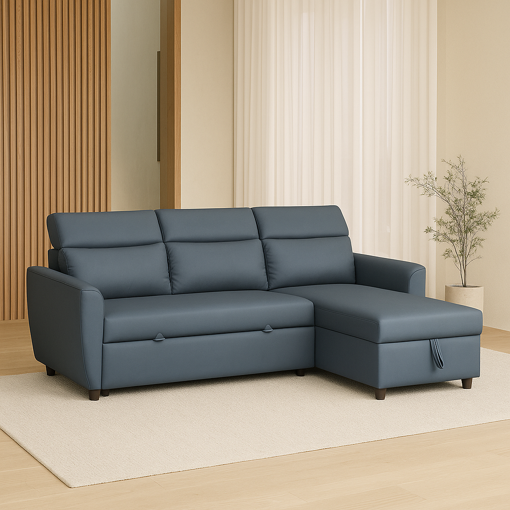 The Juliane Faux Leather Storage Sofa Bed is a versatile and elegant solution for modern living. Designed to function as a comfortable sofa, a pull-out bed, and a storage piece all in one, it blends form and function seamlessly. Its sleek faux leather finish and compact design make it ideal for urban homes, studio apartments, and multipurpose rooms.