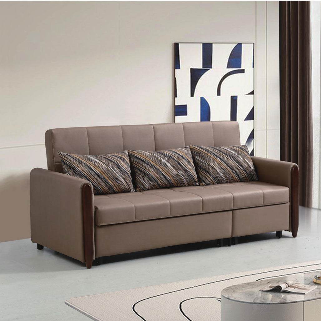 Introducing the Marvin Sofa Bed, a versatile seating solution for any living space. This 3-seater sofa boasts a handy side pouch for storing essentials. With its convenient click-clack mechanism and dual pull-out bed, it effortlessly transforms into a cosy sleeping area for guests. Supported by sturdy black plastic legs and a durable wood frame structure, it offers a weight capacity of up to 250kg. Upholstered in soft fabric, the Marvin Sofa Bed combines practicality with comfort, making it an ideal choice for accommodating visitors or simply lounging in style.