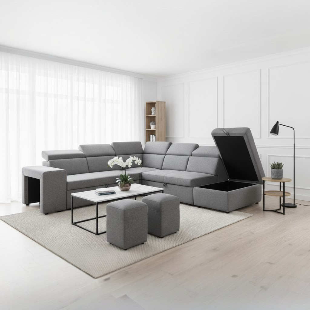 The Gregorio Storage Sofa Bed is an incredibly versatile piece of furniture that ticks many boxes. It has this adjustable headrest, which is great for customising your comfort, whether sitting up to read or lying back to relax.