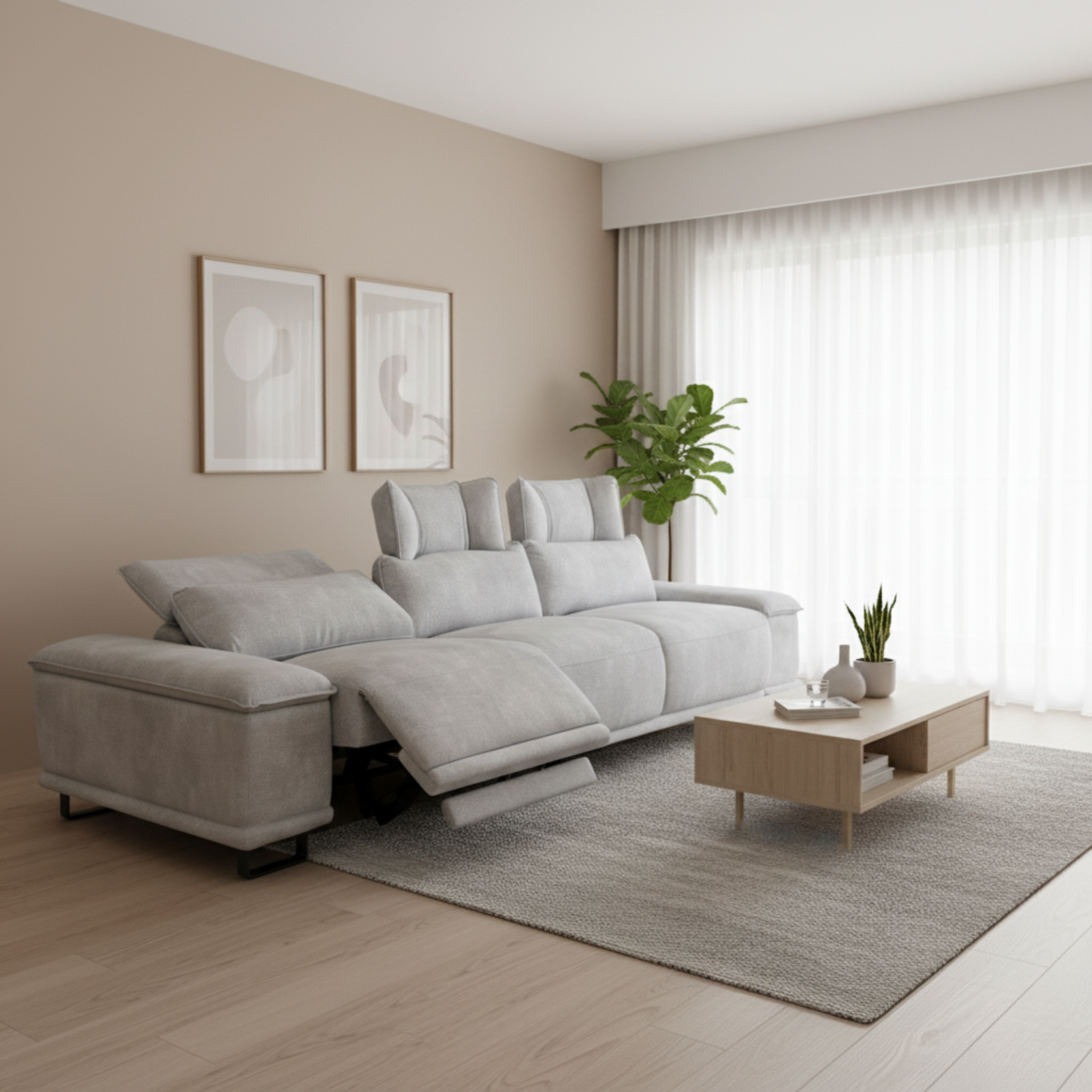 The Invar Fabric Adjustable Headrest Recliner Sofa brings together sleek design, modern functionality, and effortless upkeep — making it a standout addition to stylish homes.