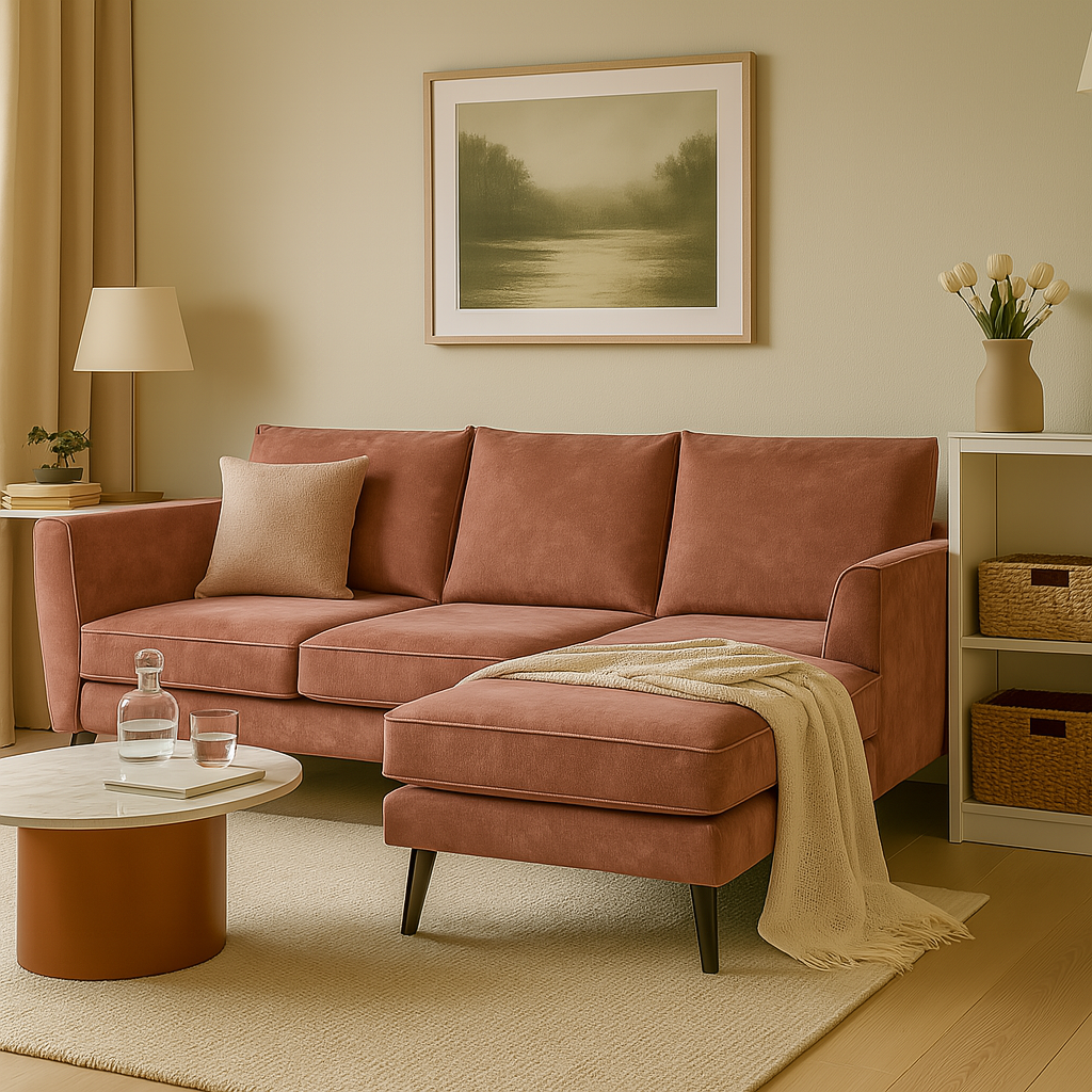Indulge in luxury with our Takuto Fabric L-Shaped Sofa. Its elegant design and premium materials offer both style and comfort, making it the perfect addition to any sophisticated living space. Trust in the quality and exclusivity of this L-shaped sofa for a truly lavish and refined experience.