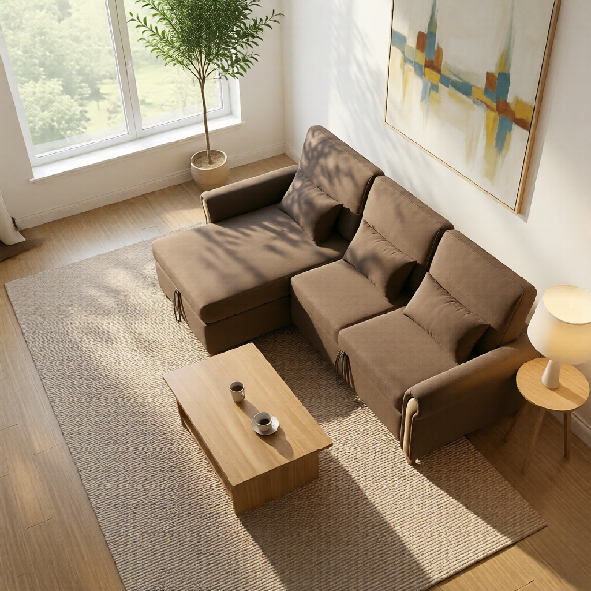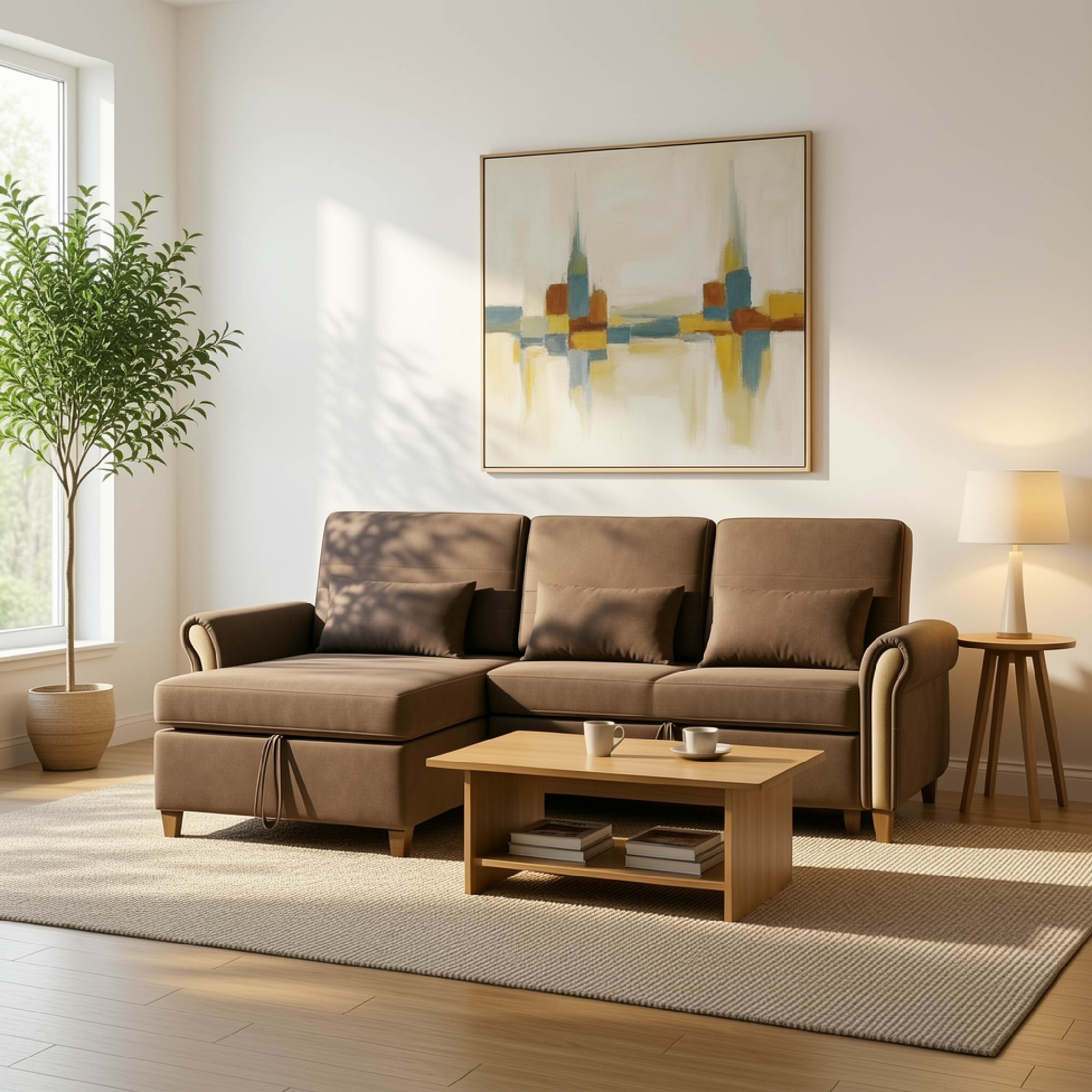 The Corbin L Shape Sofa Bed is upholstered in quality fabric, giving it a chic, contemporary look and ensuring durability. Its solid wood internal structure adds to its sturdiness and longevity, which is always a plus. The sofa bed’s high-density foam can give you comfort and support, whether sitting or lying down. Moreover, it comes with a storage space handy for tucking away bedding or other items, keeping your space tidy.