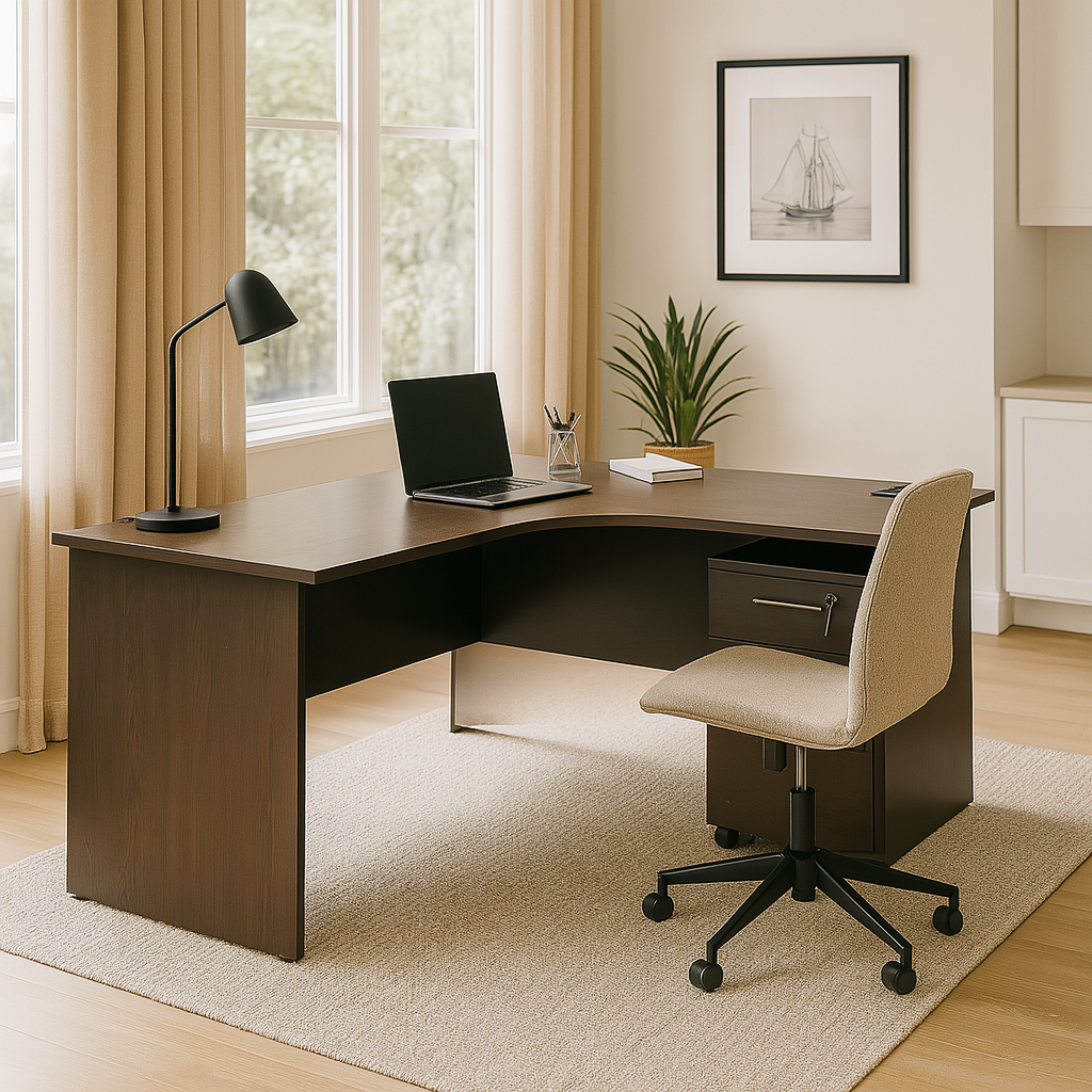 Aries L Shape Study Table with Mobile Pedestal (160cm)