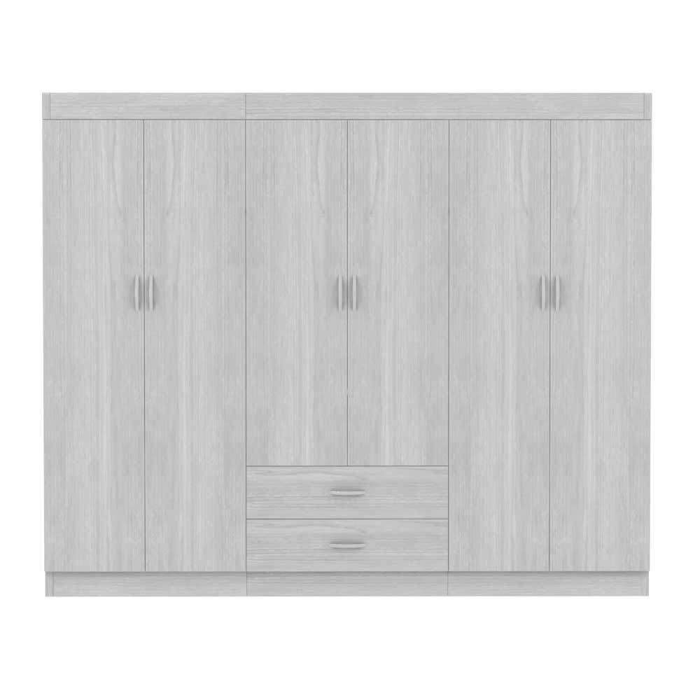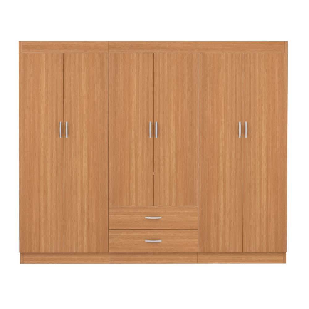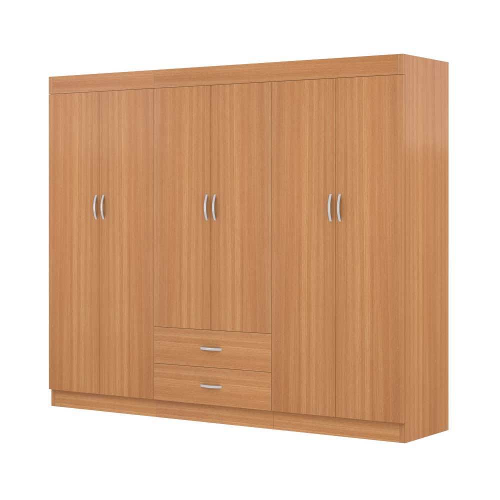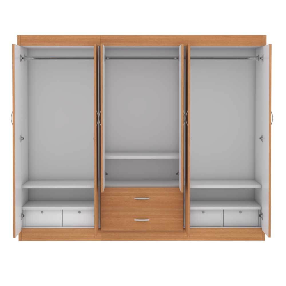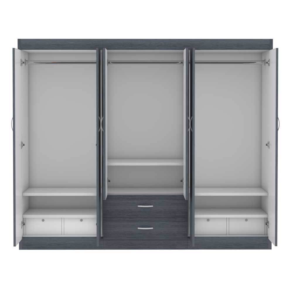 The Quinton 6-Door Open Wardrobe is about functional simplicity. Crafted from solid plywood, it features soft-closing hinged doors for smooth operation. With four internal drawers and two external drawers, it offers ample storage space.