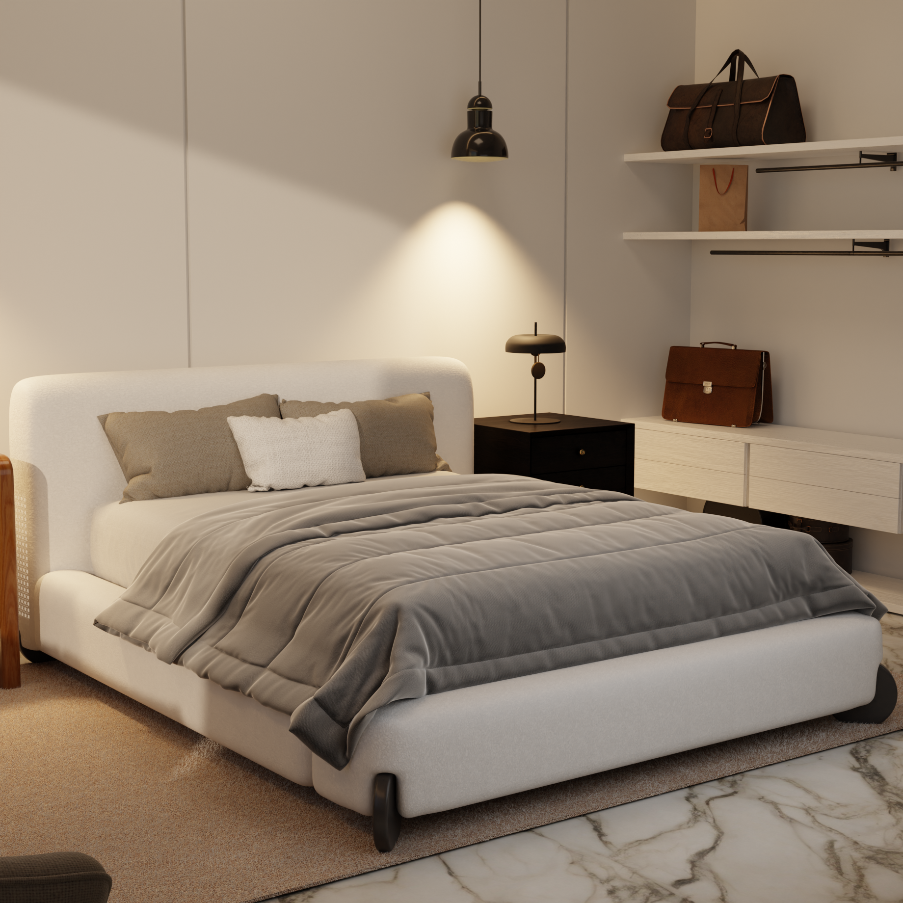 The Dalen Boucle Fabric Bed Frame combines cozy comfort with sleek design to transform your bedroom. Upholstered in soft, durable fabric, it offers a plush touch while providing sturdy support for restful sleep. Its modern silhouette fits seamlessly into any decor, elevating your space with understated elegance. Ideal for those seeking both style and comfort in one essential piece.