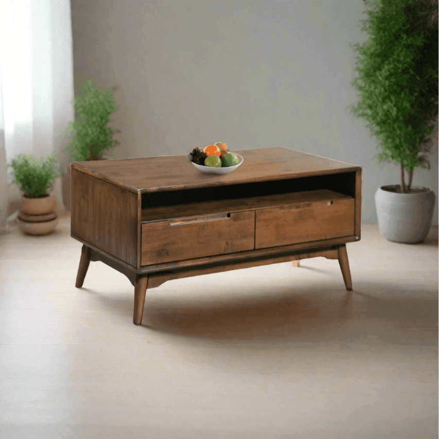Indulge in both form and function with the Khim Solid Wood Coffee Table - a perfect addition to any minimalist or traditional home. Its timeless design and rich brown finish seamlessly complement any interior. Crafted from sturdy solid wood, this coffee table guarantees durability and long-lasting use. Enhance your space with this practical and stylish investment.