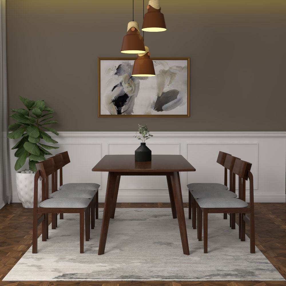 Since the Aurelian Wooden Dining Table is larger, opt for chairs with a bit of heft – think upholstered or solid wood chairs that are comfortable yet elegant. These will complement the table’s substantial size and solid rubber wood construction.