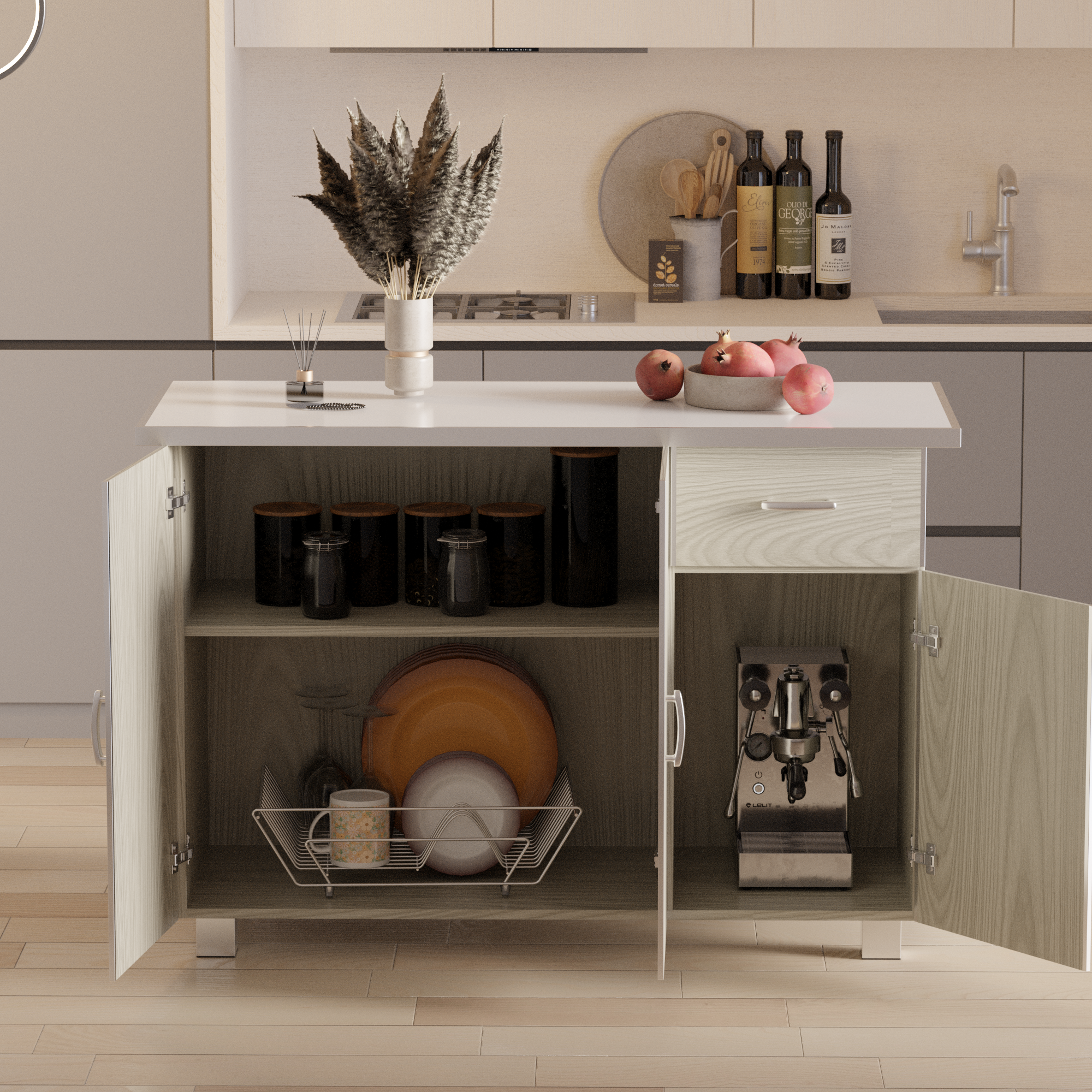 We are happy to have this kitchen cabinet with counter top which is very appropriate to place our toaster & rice cooker . The delivery was timely to meet our needs. Furnishing was well done .