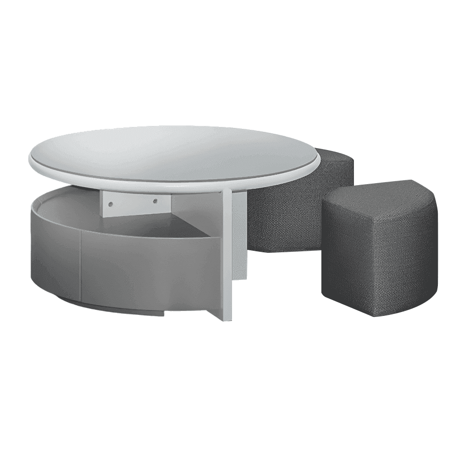 Alanna Tempered Glass Coffee Table + 2 Fabric Stool