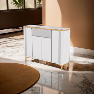 This shoe cabinet exudes a chic, elegant charm, making it a perfect fit for sprucing up your entryway.