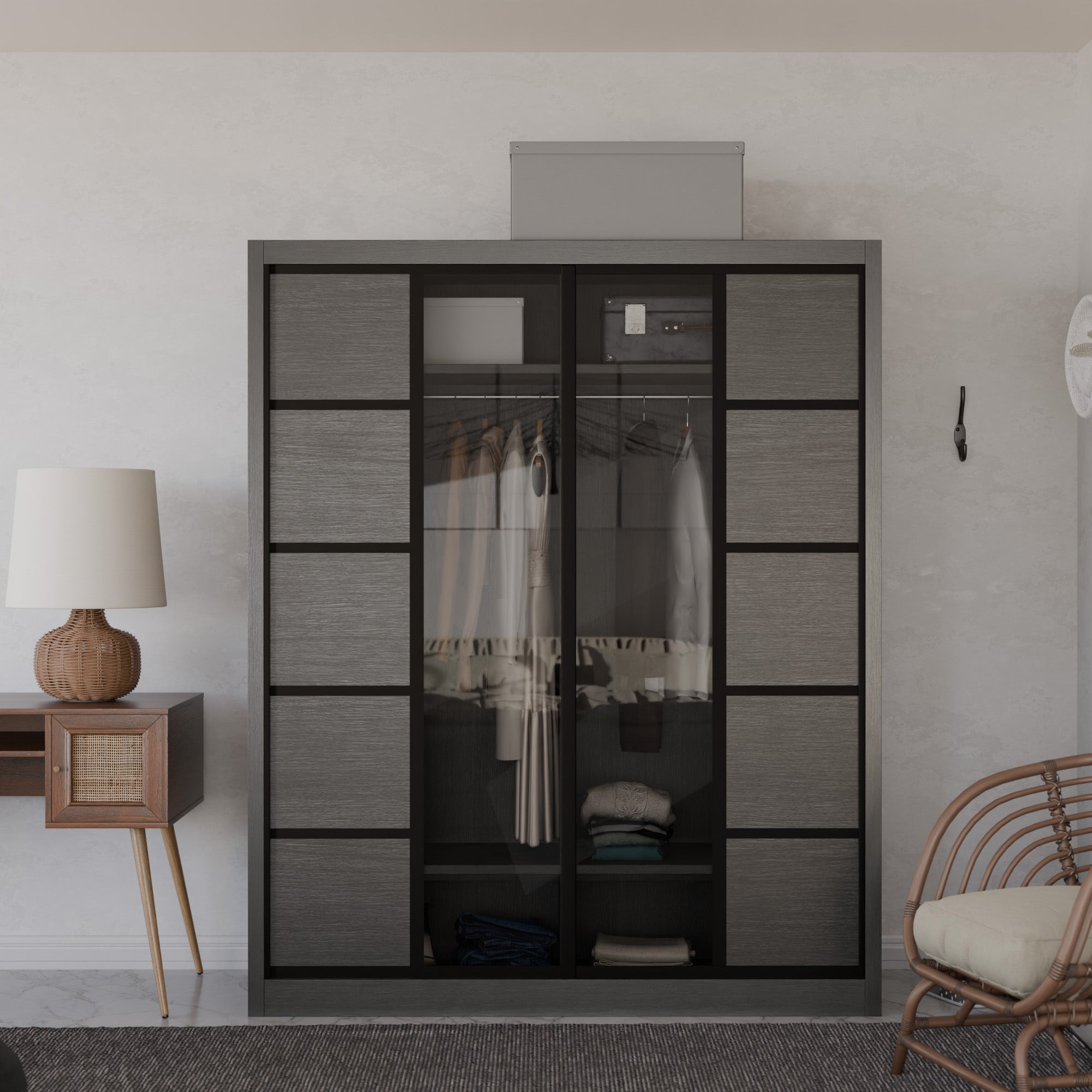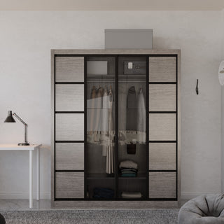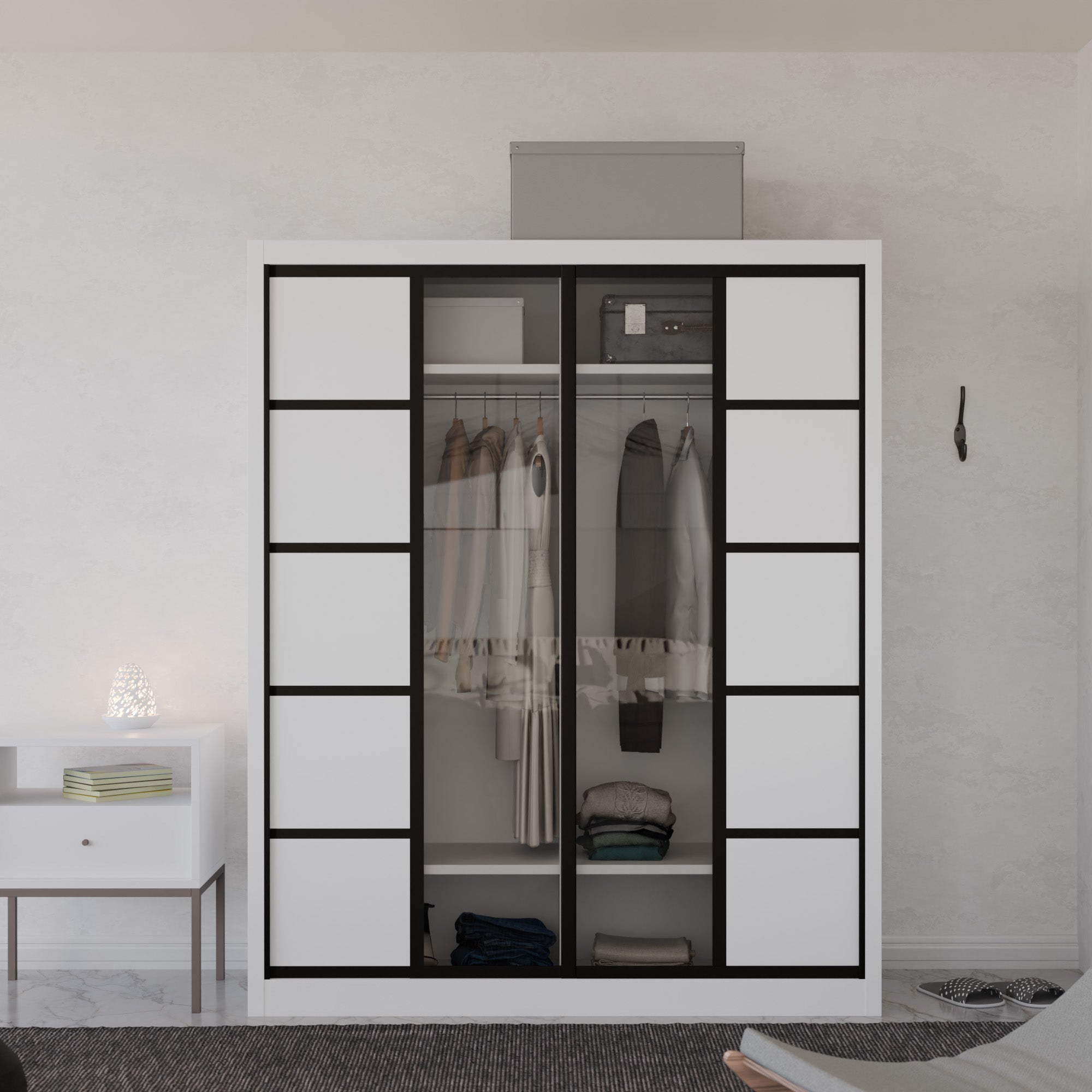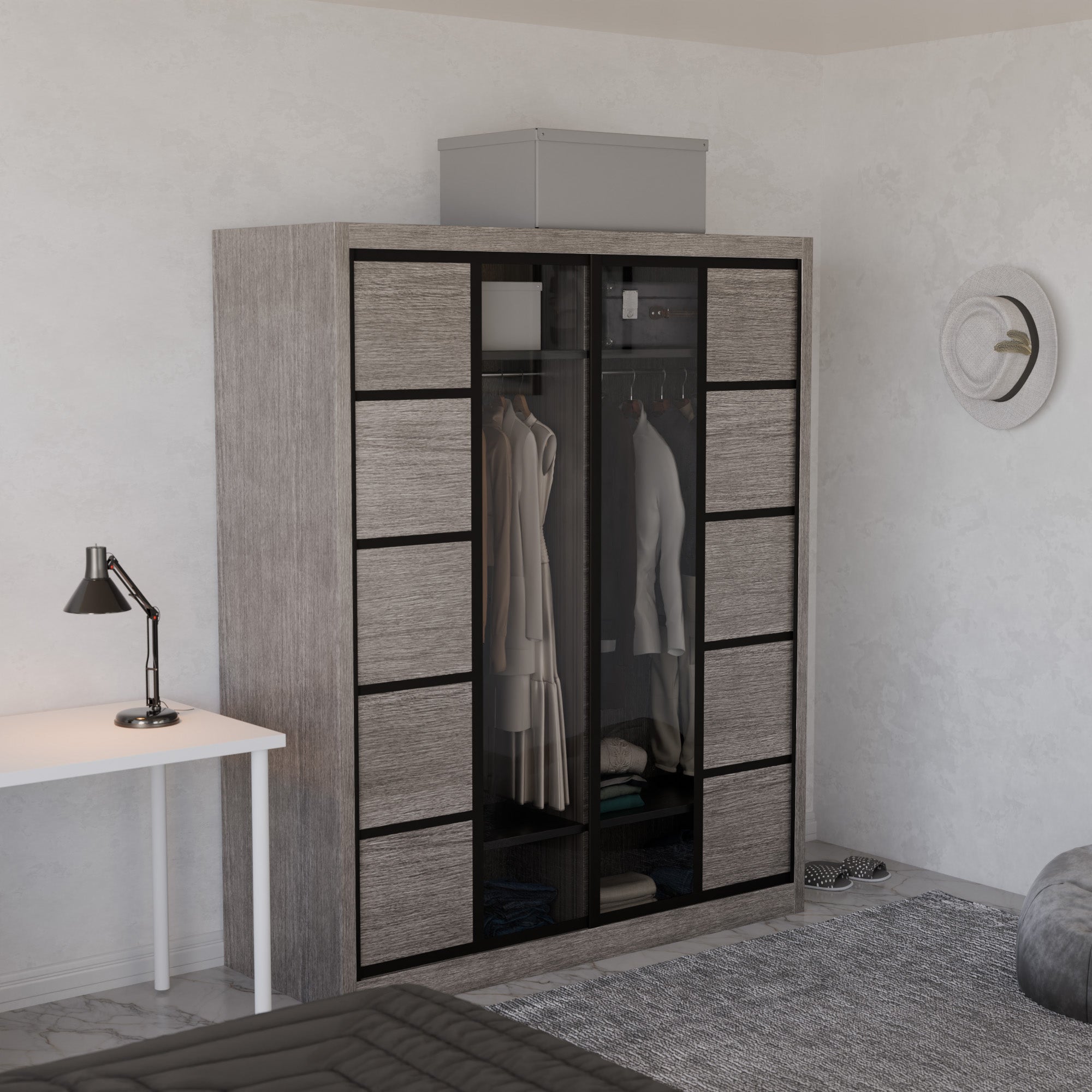 The Aldona Modular Wardrobe is a functional and stylish storage solution for our bedroom. Made with a sturdy particle board frame and plywood backing, this wardrobe can withstand daily use. The laminate finish gives elegance to the overall design, making it a perfect addition to any modern interior. The sliding door track system allows easy access to your clothes and personal items, while the aluminium-framed glass sliding doors add a contemporary touch. With ample storage space and a sleek design, the Aldona Modular Wardrobe is a practical and stylish choice for organising your wardrobe.