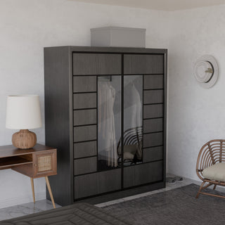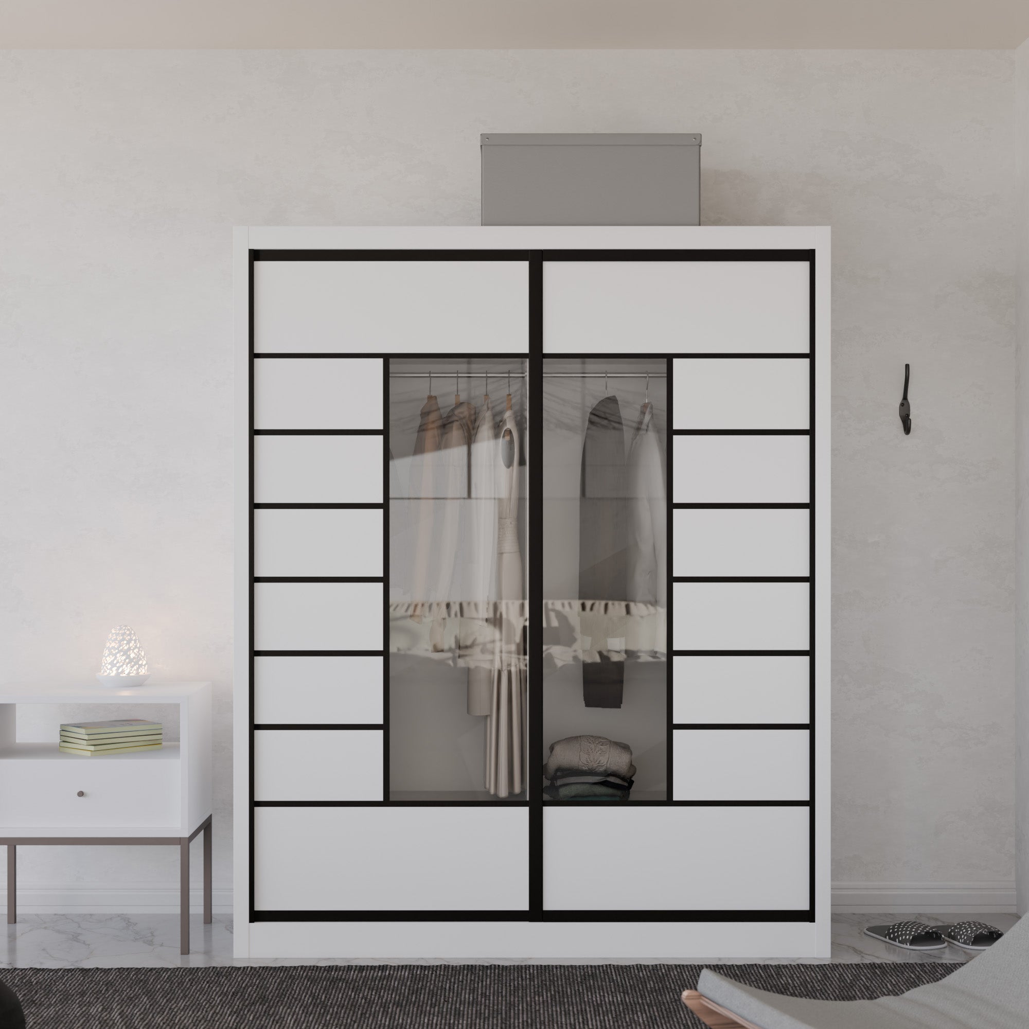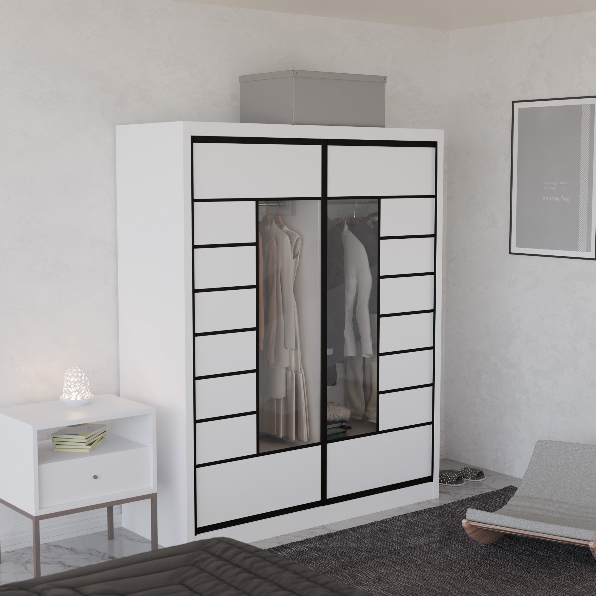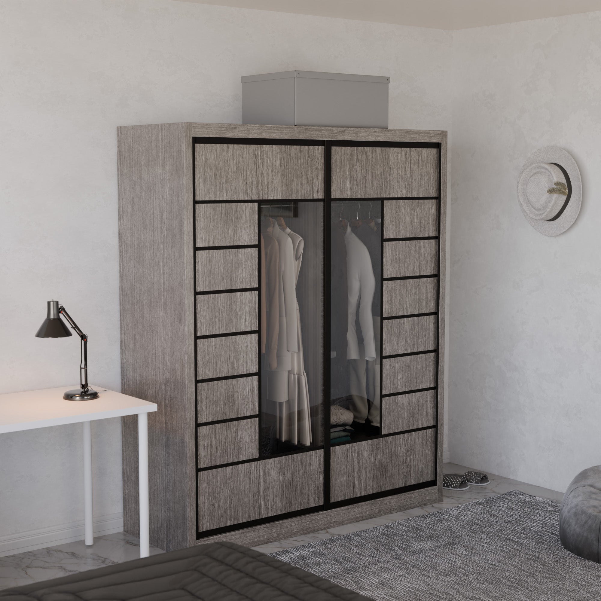 The Aldona Modular Wardrobe is a functional and stylish storage solution for our bedroom. Made with a sturdy particle board frame and plywood backing, this wardrobe can withstand daily use. The laminate finish gives elegance to the overall design, making it a perfect addition to any modern interior. The sliding door track system allows easy access to your clothes and personal items, while the aluminium-framed glass sliding doors add a contemporary touch. With ample storage space and a sleek design, the Aldona Modular Wardrobe is a practical and stylish choice for organising your wardrobe.