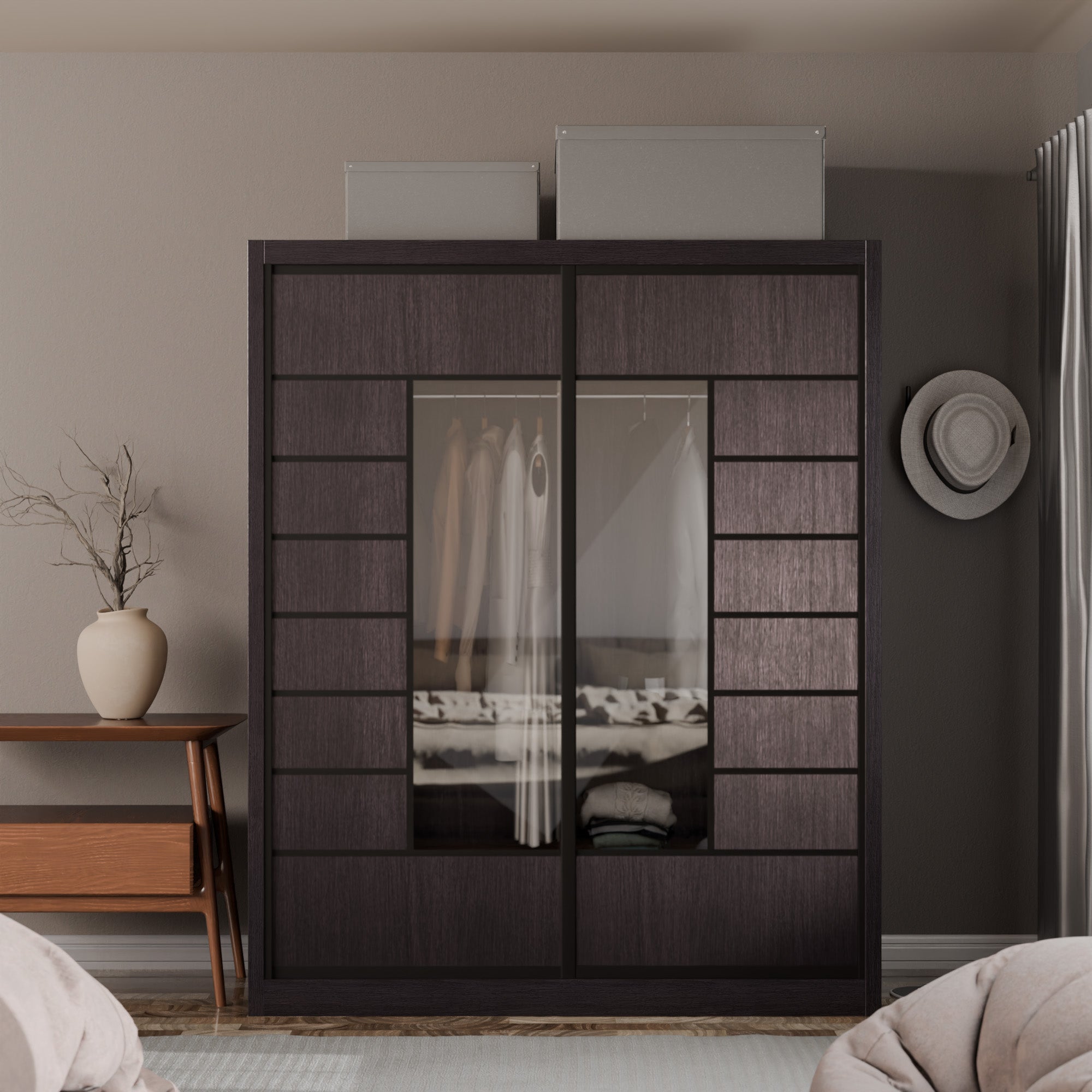 8 feet wardrobe will come in 3 compartments with an additional option to choose the center interior sections