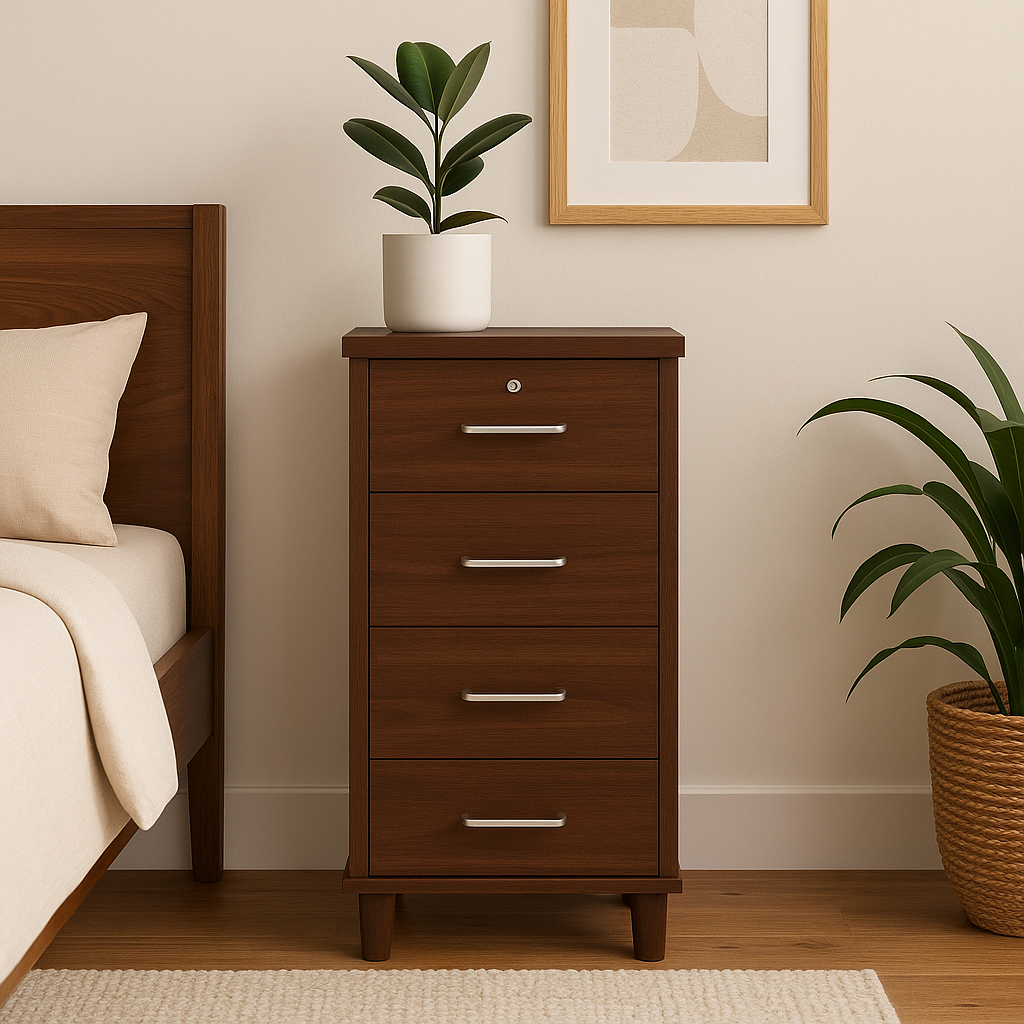 Simplify your storage solutions with the Alera Chest of Drawers as this sleek and functional furniture piece is designed to make organising your belongings a breeze. With a modern and minimalist look, it seamlessly fits into any room, adding both style and functionality. Featuring multiple drawers, each with its lock, the Alera Chest of Drawers provides secure storage for your valuables so whether you’re stashing away clothes, accessories, or important documents, rest easy knowing that each drawer can be securely locked for added piece of mind.