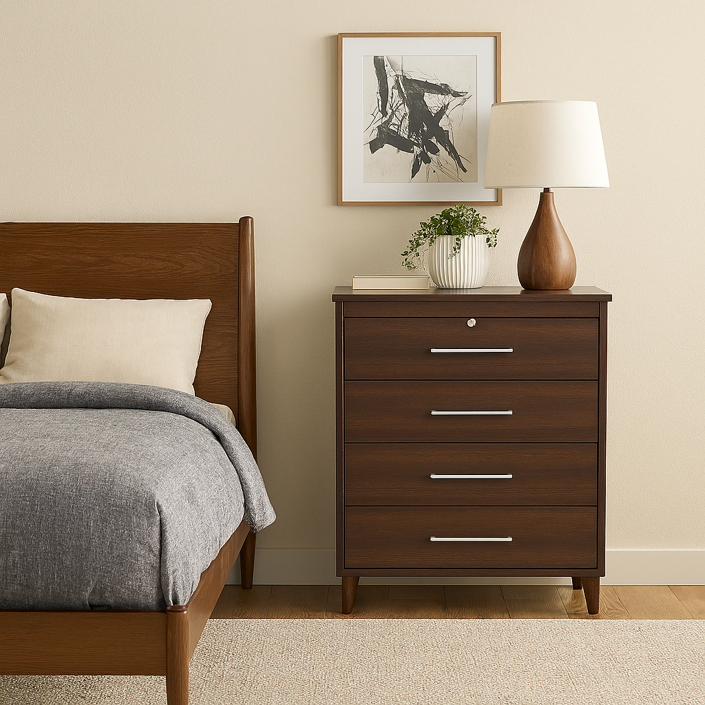 Designed with simplicity and functionality, the Aloric Chest of Drawer boasts four spacious drawers, providing a perfect home for your clothes, accessories, or other essentials. Crafted with durability, the chest features high-quality materials that ensure longevity and resilience, bringing order to chaos and elevating your home’s style with this functional and aesthetically pleasing piece of furniture.