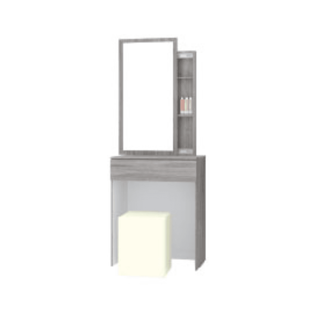 The Amory Dressing Table is a compact yet practical addition to any bedroom or walk-in closet. Crafted from durable particle board, this 60cm dresser features a sleek mirror that slides open to reveal three hidden storage shelves—perfect for organizing makeup, skincare, and daily essentials. Paired with a matching dressing stool, the Amory set brings function and style to your personal grooming space.