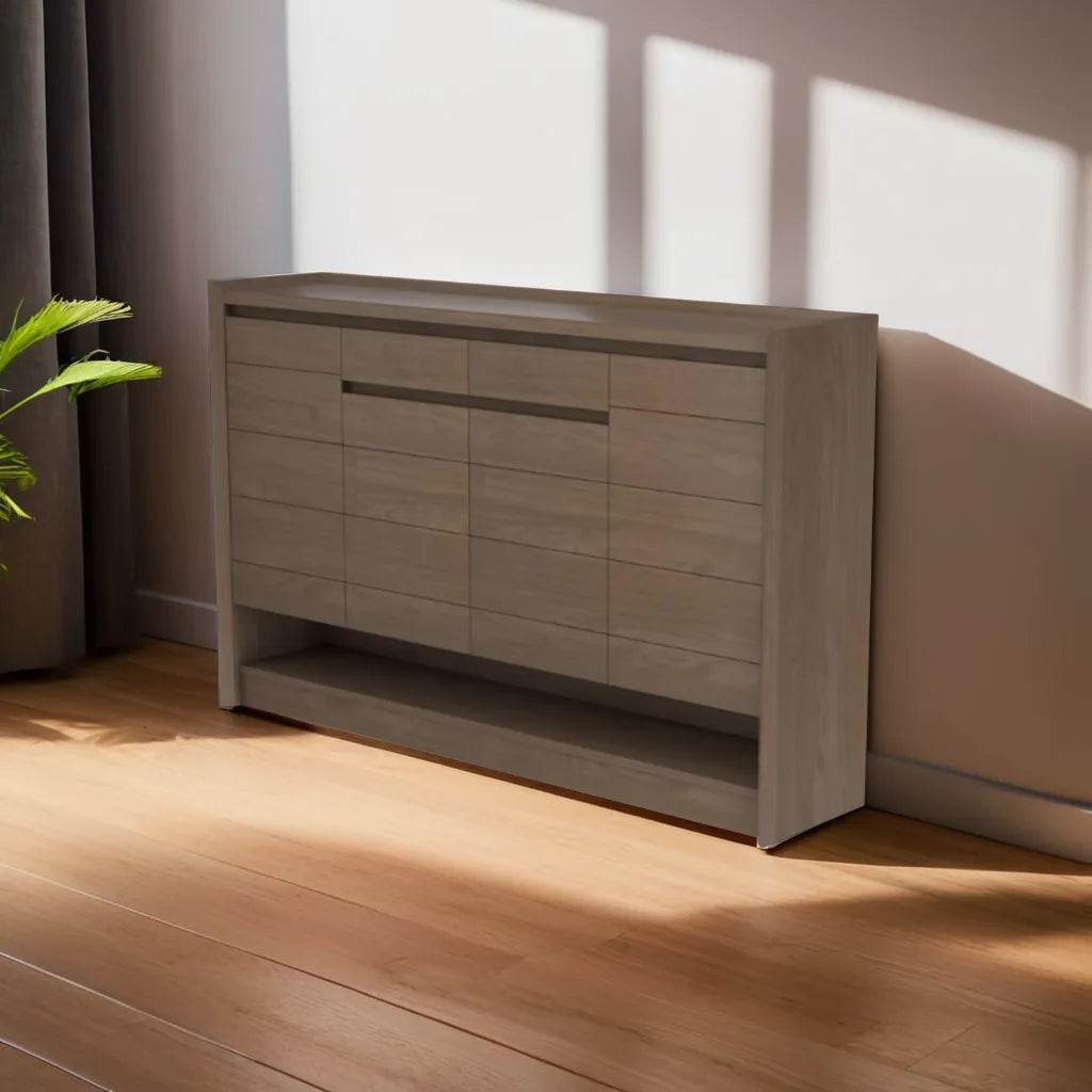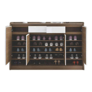 The size of the Anglo 4-Door Shoe Cabinet is spacious enough to hold many shoes without taking up too much floor space in your entryway or hallway. This shoe cabinet has four doors to organise your shoes into categories - one section for everyday wear, another for work shoes, and one for those special occasion pairs. It keeps everything neat and out of sight, which is excellent if you aim for a clutter-free look.