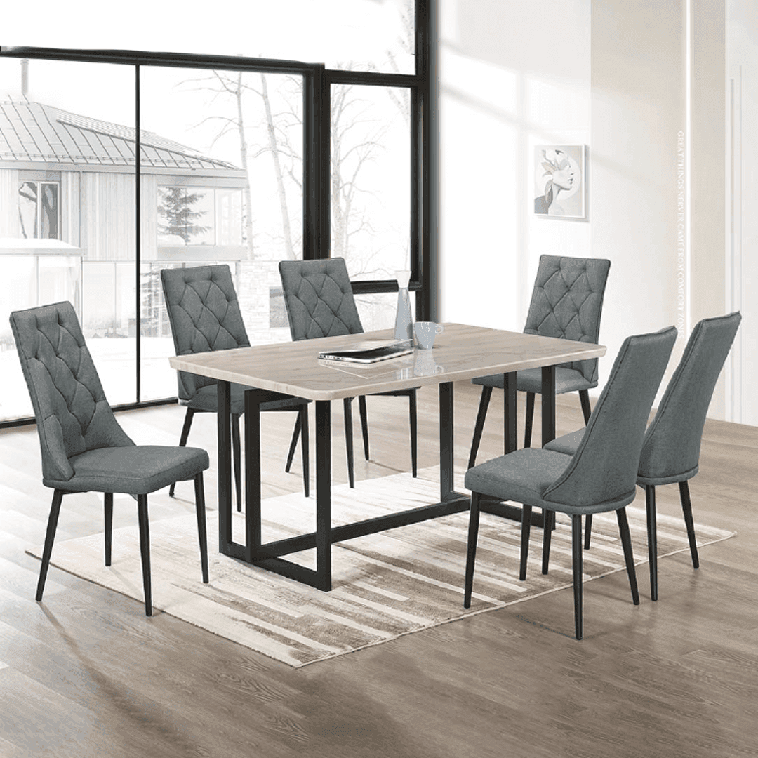 1 Marble Dining Table + 6 Fabric Dining Chairs
