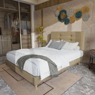 Elevate your bedroom experience with the sophistication of the Arlen Fabric Bed Frame. Our Fabric Bed Frames are made from high-quality materials that features upholstered headboard and premium fabric upholstery adding luxury feels to your sleeping space. It also features water repellent property ensuring that accidental spills bead up on the surface, preventing them from seeping into the fabric and causing lasting damage that contributes to the longevity of the bed frame, keeping it looking pristine for years to come.