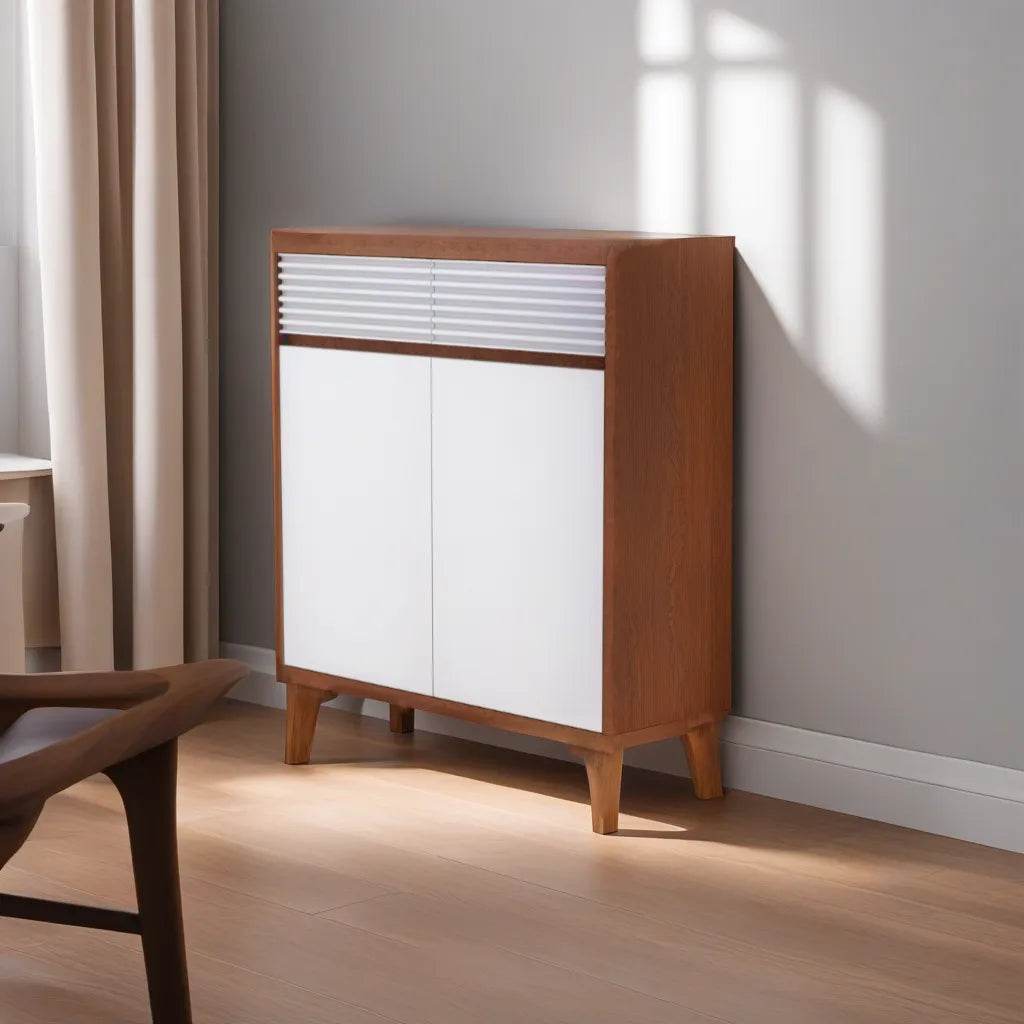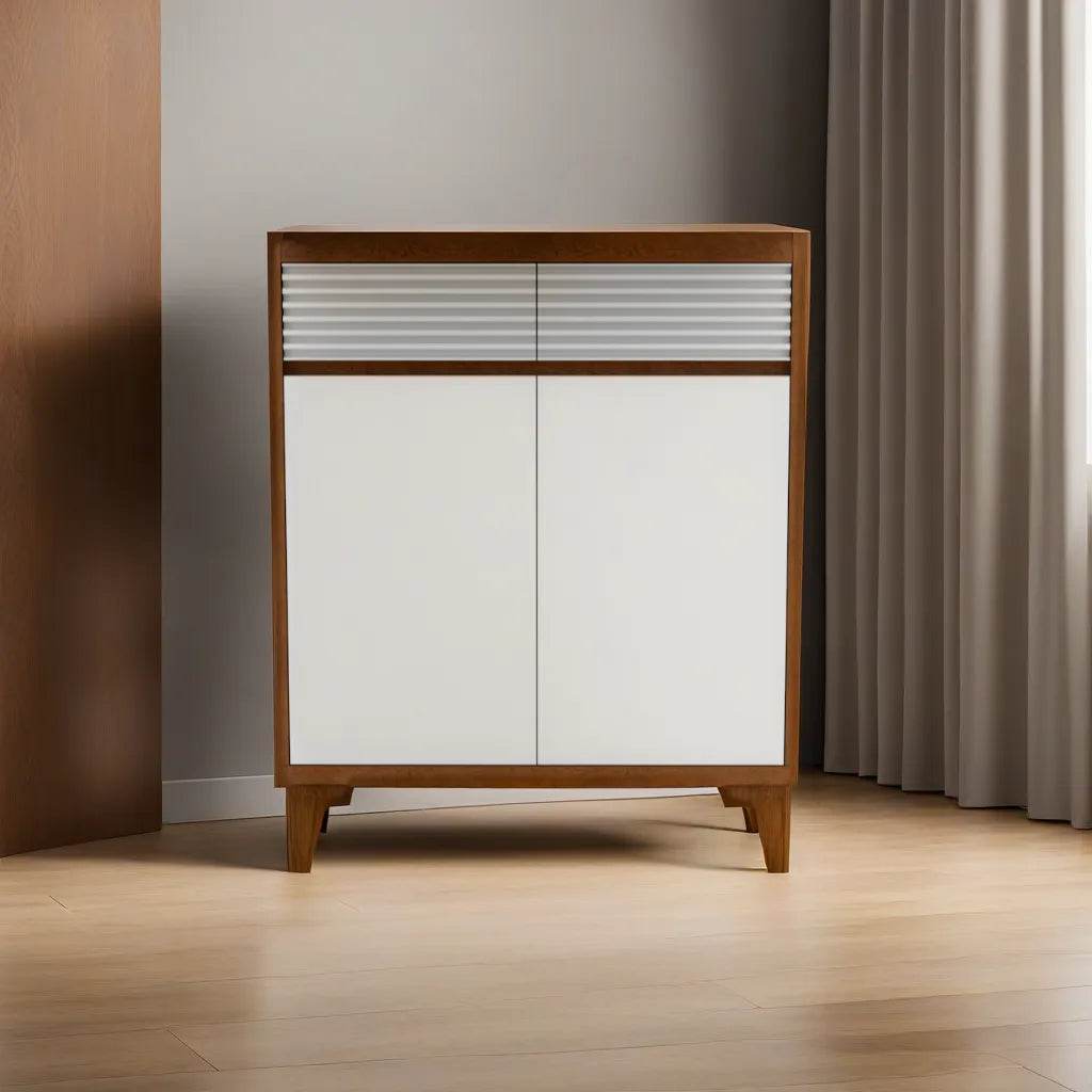 The Arlene I Shoe Cabinet is a game-changer for keeping shoes organised. Made of MDF with a laminated finish, this shoe cabinet is sturdy and has a sleek look that can blend with any decor. And the best part? It has two doors and two drawers, which means tons of space for shoes and other essentials. The shelves inside are handy for separating shoes or storing accessories.
