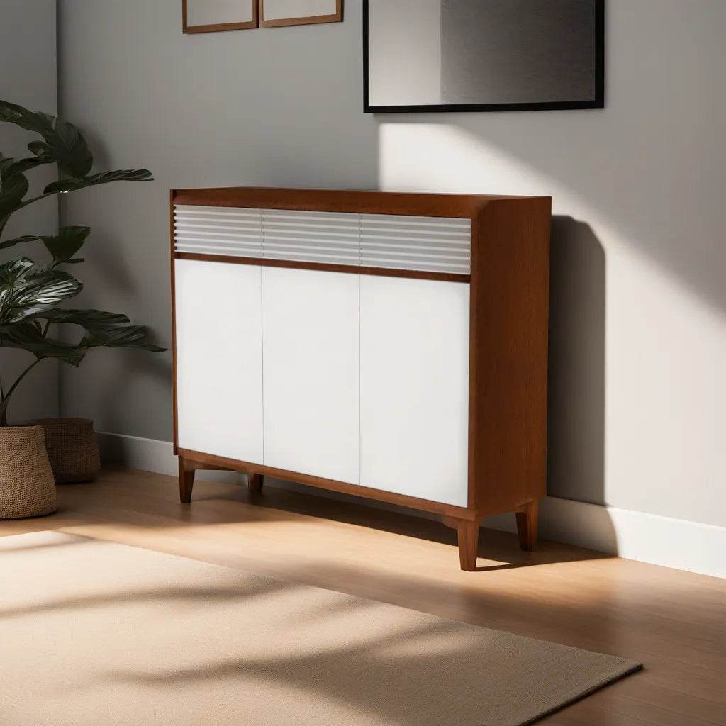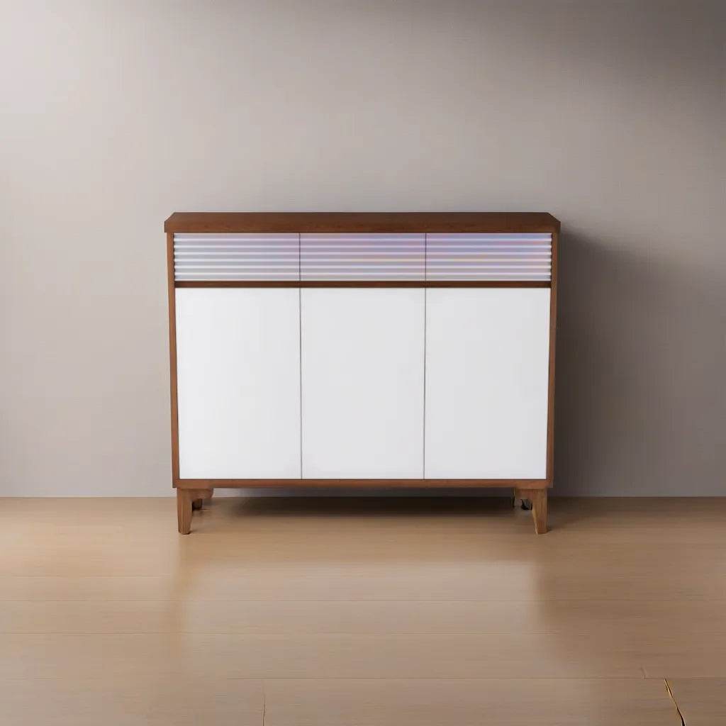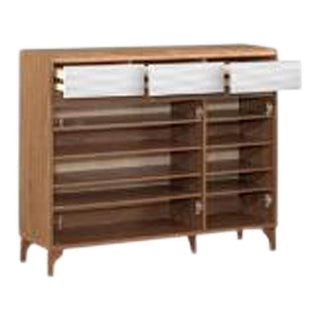 The Arlene II Shoe Cabinet is a game-changer for your entryway. Made from MDF with a sleek laminated finish, it looks modern and will blend well with other furniture. What you€™ll love the most in this shoe cabinet is its three doors and three drawers, which are perfect for tucking away all sorts of shoes, from sneakers to high heels. Plus, the shelves inside? They are handy for organising.