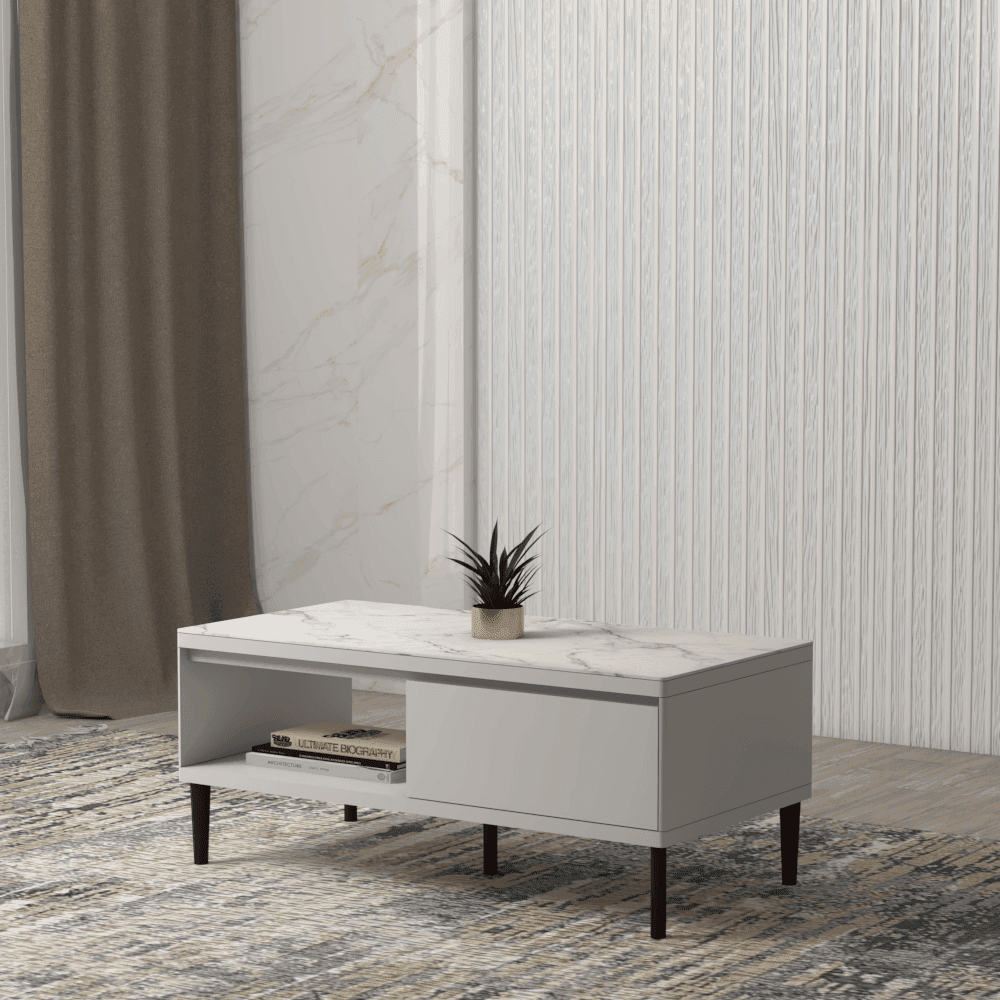 The Aslan Sintered Stone Coffee Table is more than just a surface to rest your coffee mug. It’s a versatile, stylish, and practical addition to your home, enhancing your living area with its elegant design and convenient features. Boasting a sintered stone tabletop renowned for its durability, it resists scratches, stains, and heat, making it an ideal choice for everyday use. And what makes this coffee table even more efficient? Its drawer compartment and the open storage space below.
