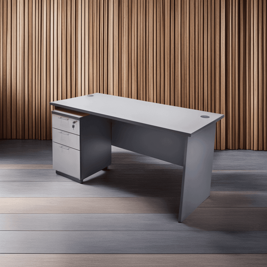 The Aster Study Table (150cm) with Mobile Pedestal offers a spacious and organised workspace, blending functionality with a touch of modern style. Its sturdy build ensures durability and a reliable foundation for daily tasks. The accompanying Mobile Pedestal adds convenience, offering storage space for documents and essentials.
