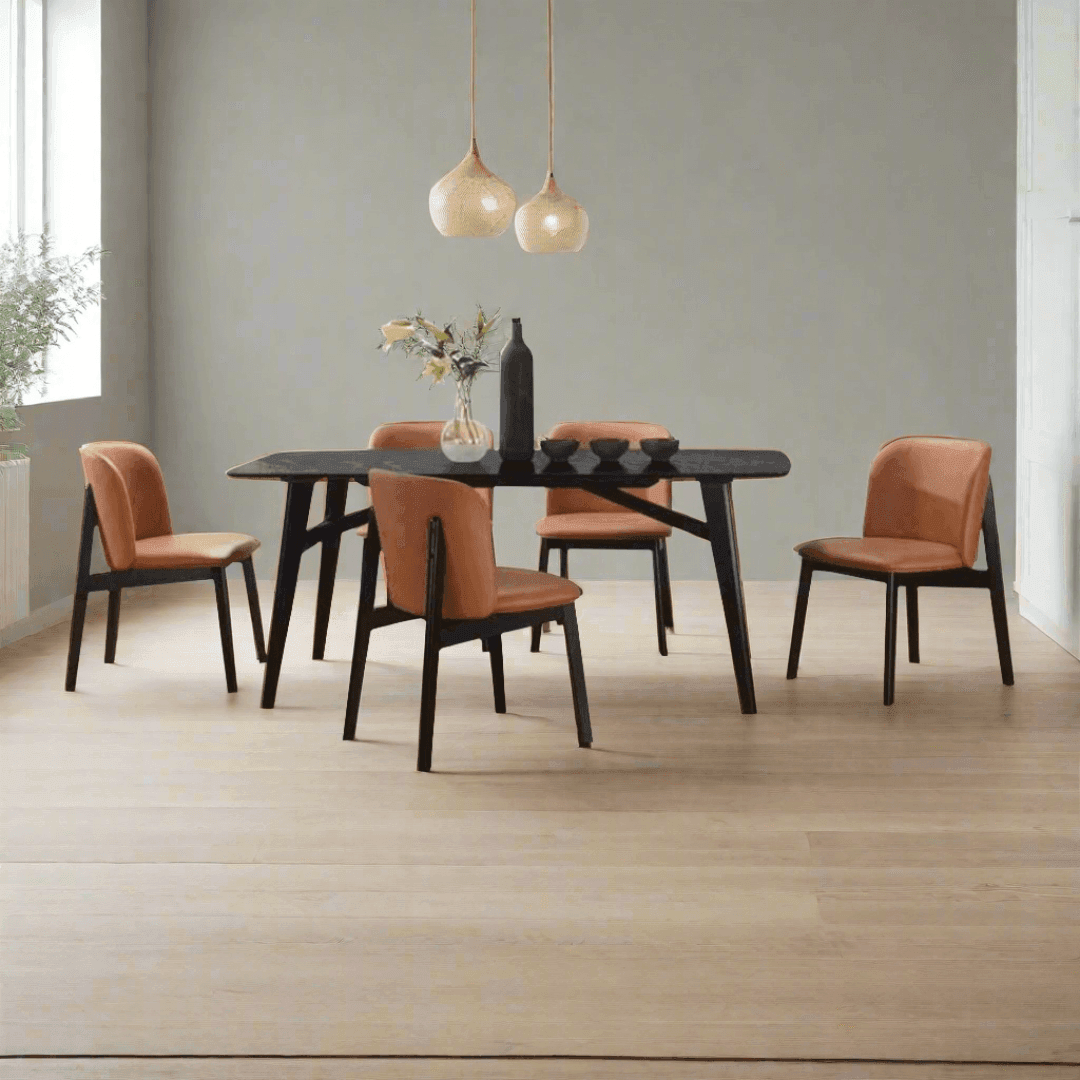 The Atlas Extendable Dining Set is made of MDF wood with a cool matt black finish that can easily match any decor. And its matching chairs? Comfy as can be with PU leather and sturdy rubber wood legs.