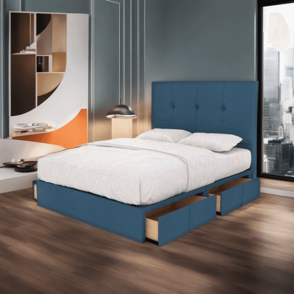Azure Fabric Drawer Bed Frame (Water Repellent)