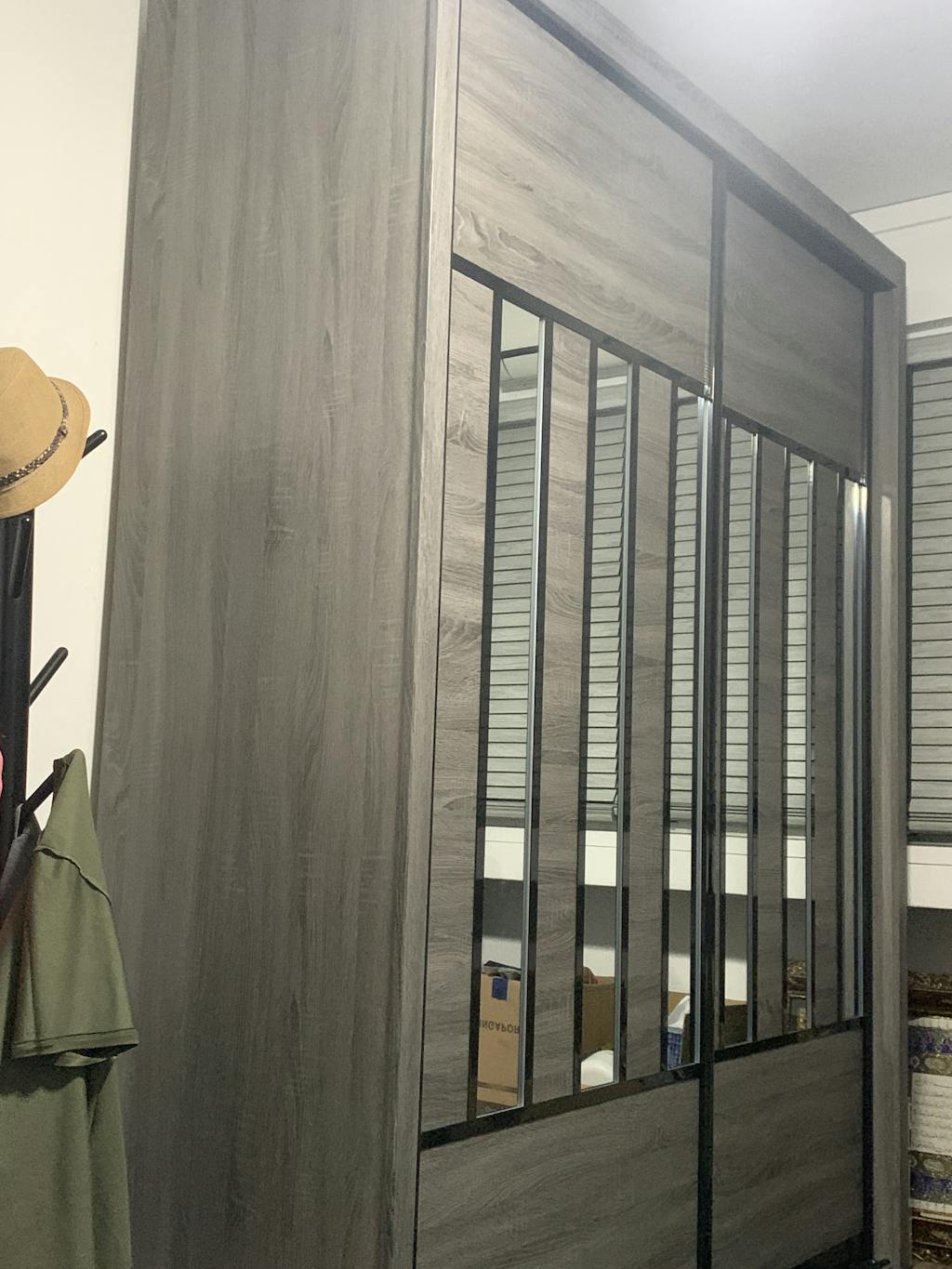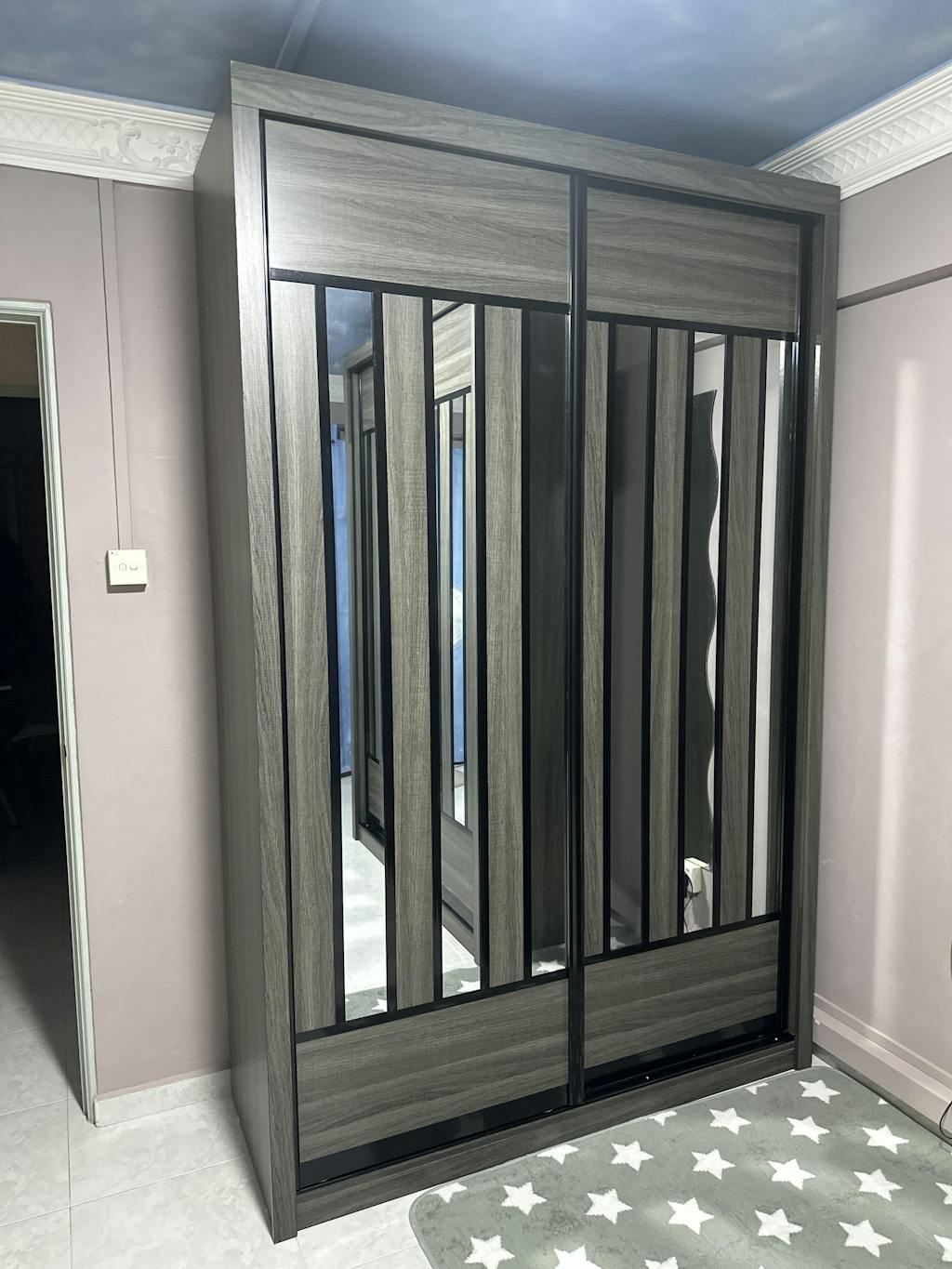 The Becca Modular Wardrobe frame is constructed with particle board frame, with a plywood backing and laminate finish. The doors are made of wooden laminate that slides on a smooth sliding door track system.