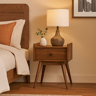 Transform your bedroom with the Birger Wooden Bedside Table. Featuring a sleek design with a rich wooden finish, this wooden bedside table effortlessly blends with any bedroom décor with its compact size that makes it perfect for small spaces, while the spacious tabletop provides ample room for your nightly essentials. The single drawer is ideal for keeping your reading glasses, books, or other personal items neatly organised and within easy reach.