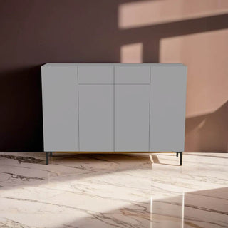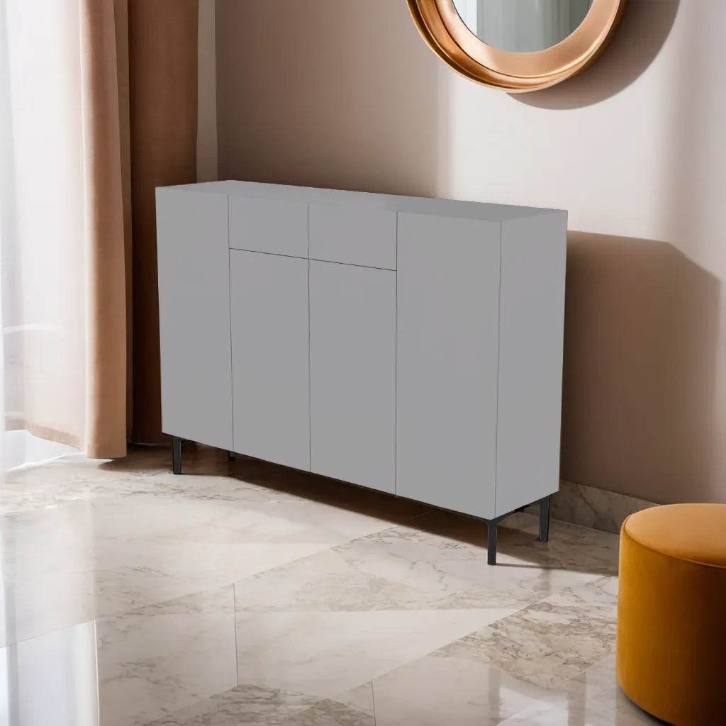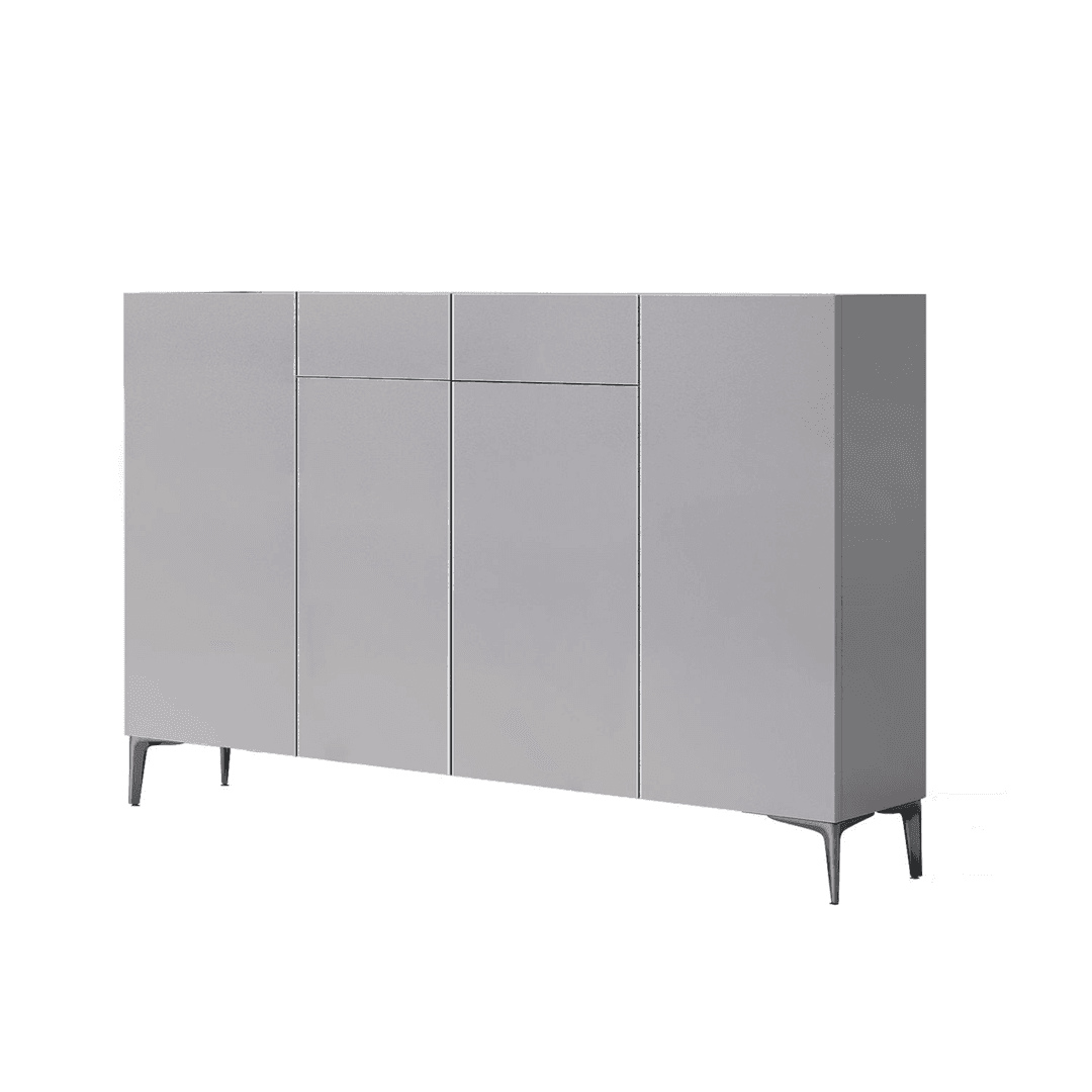Are you tired of tripping over shoes or scrambling to find pairs? The Breccan 4-Door Shoe Cabinet, with its sleek gloss light grey finish and sophisticated sintered stone top, is here to save the day. Its four doors and two drawers offer ample space, perfect for families or shoe enthusiasts. The soft-closing doors add a luxurious touch, and the stainless steel legs ensure durability.