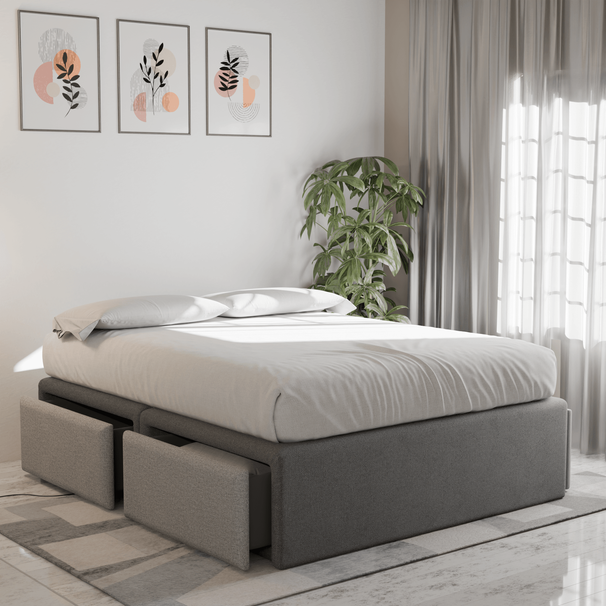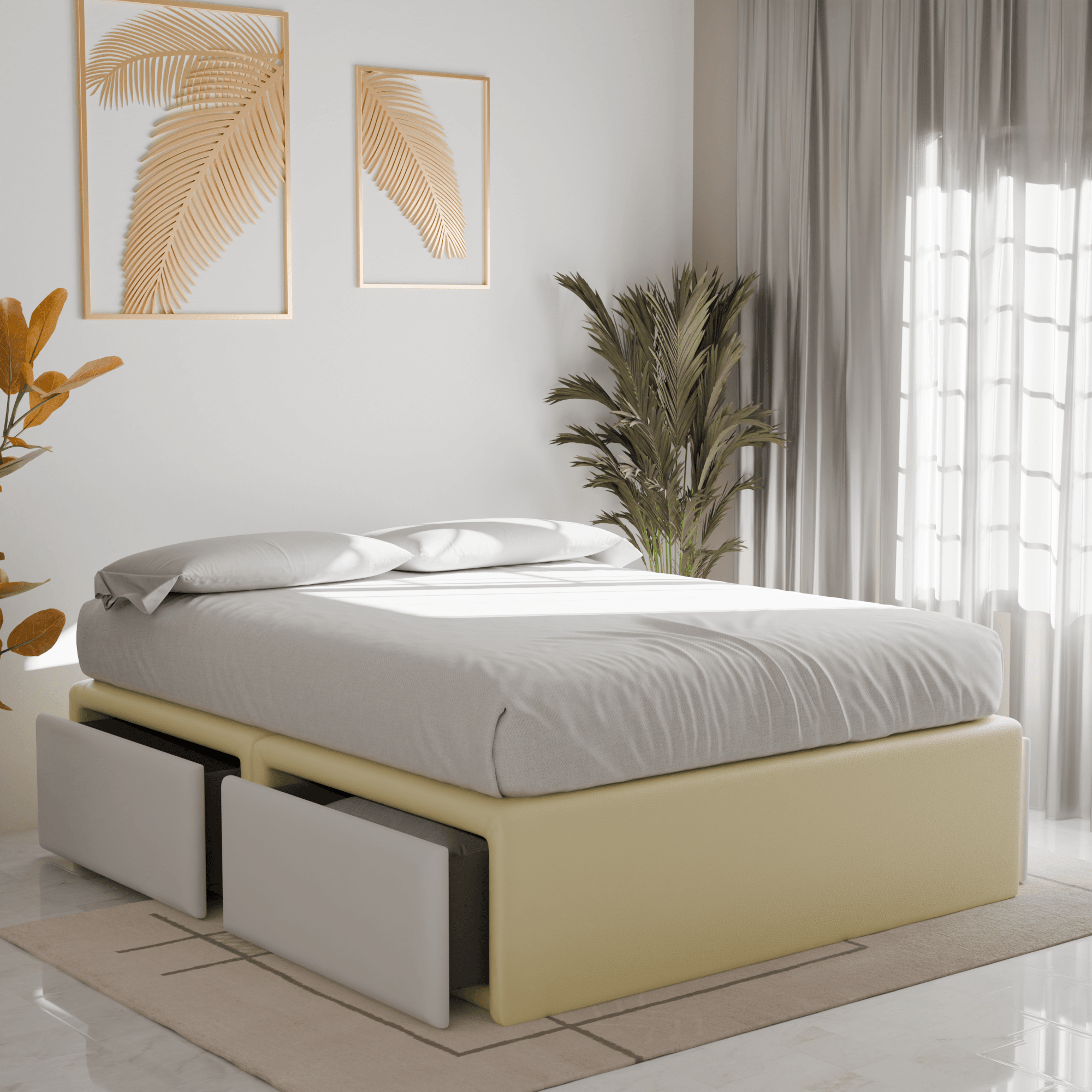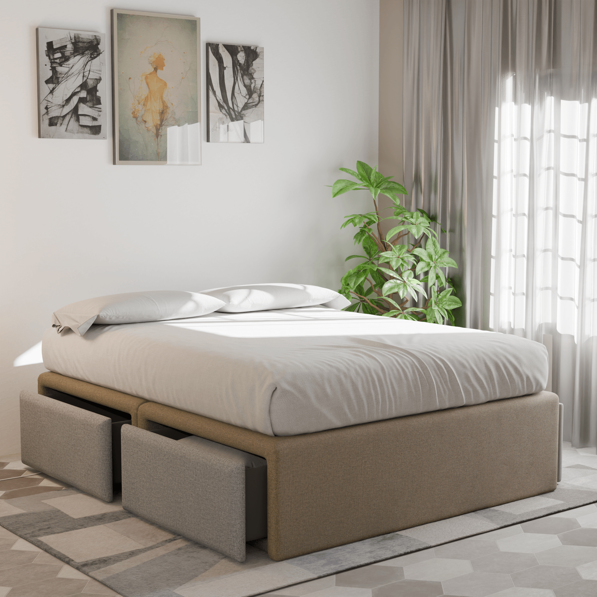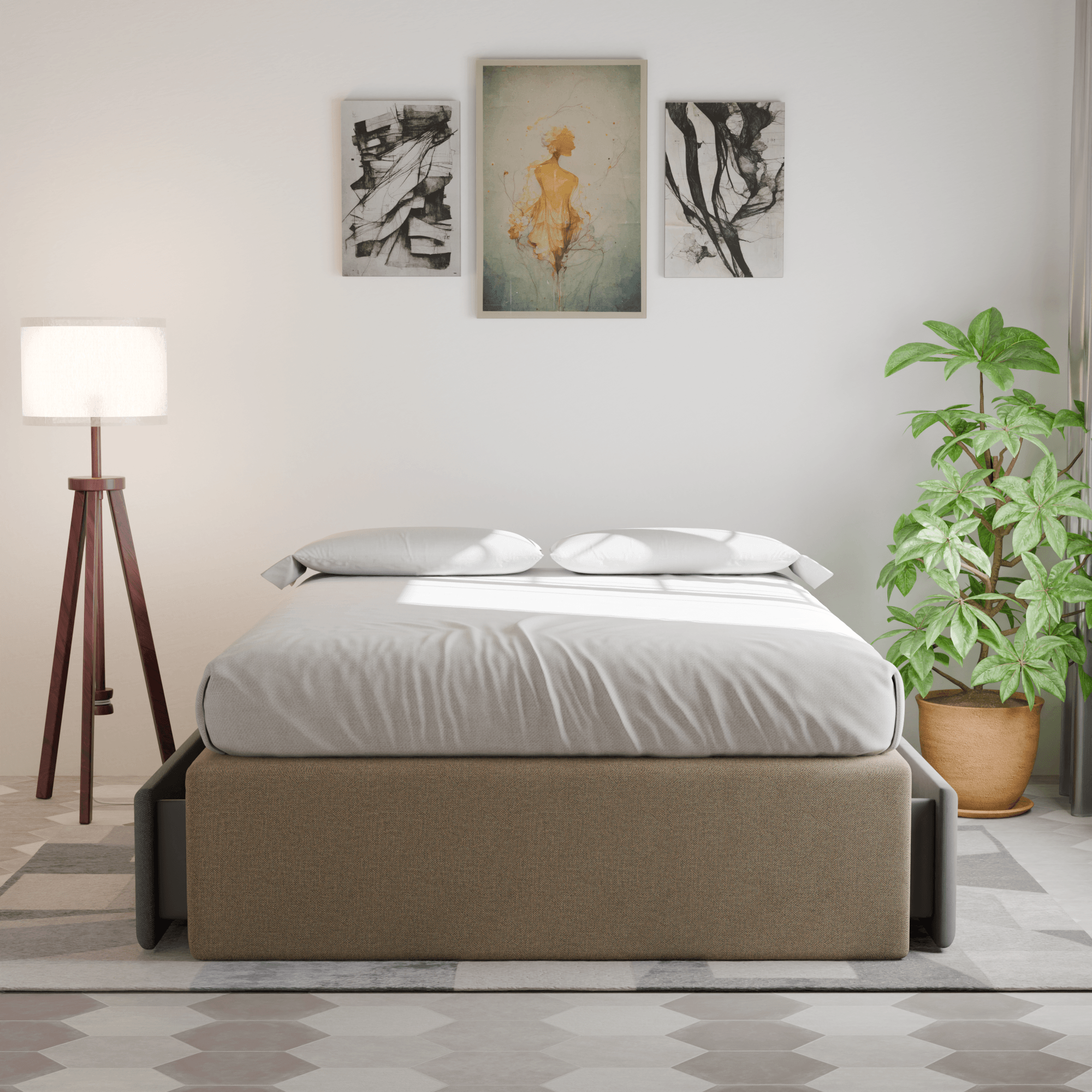 Transform your bedroom into a luxurious retreat with the Brenna Drawer Storage Bed Frame. The elegant design boasts a functional feature of built-in drawers, offering ample storage for linens and clothing. Crafted with high-quality materials, this bed frame is a perfect blend of style and functionality for a sophisticated and clutter-free sleeping experience.