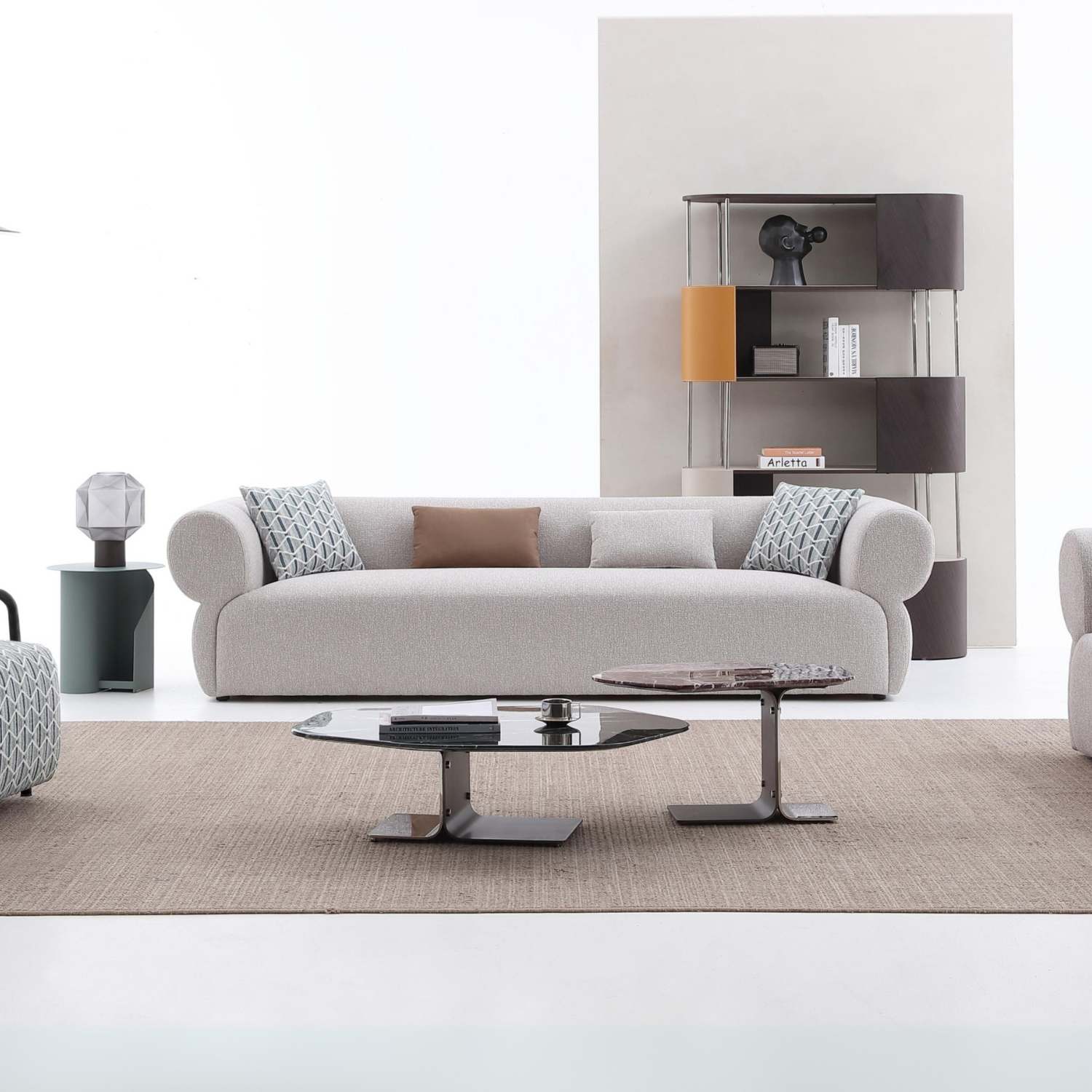 The Bruna Boucle Fabric Sofa combines soft, luxurious texture with a modern silhouette to create a stunning centerpiece for your living or commercial space. Upholstered in high-quality boucle fabric, this sofa is available in multiple configurations including armchair, 2 seater, 3 seater, 4 seater, and L-shaped modular setups, offering flexibility for various room layouts. With its low-profile legs and minimalist design, the Bruna fits seamlessly into modern and Scandinavian interiors.