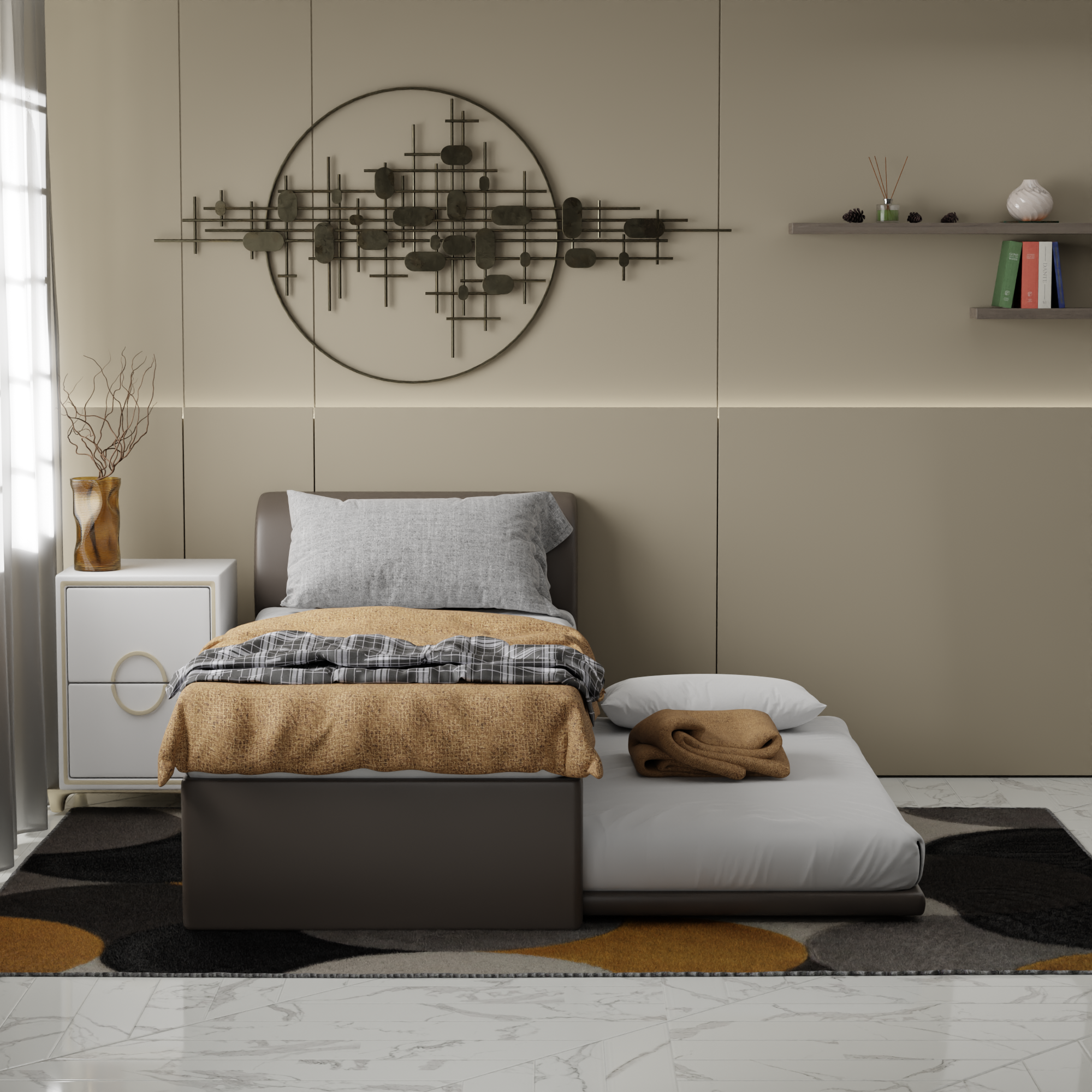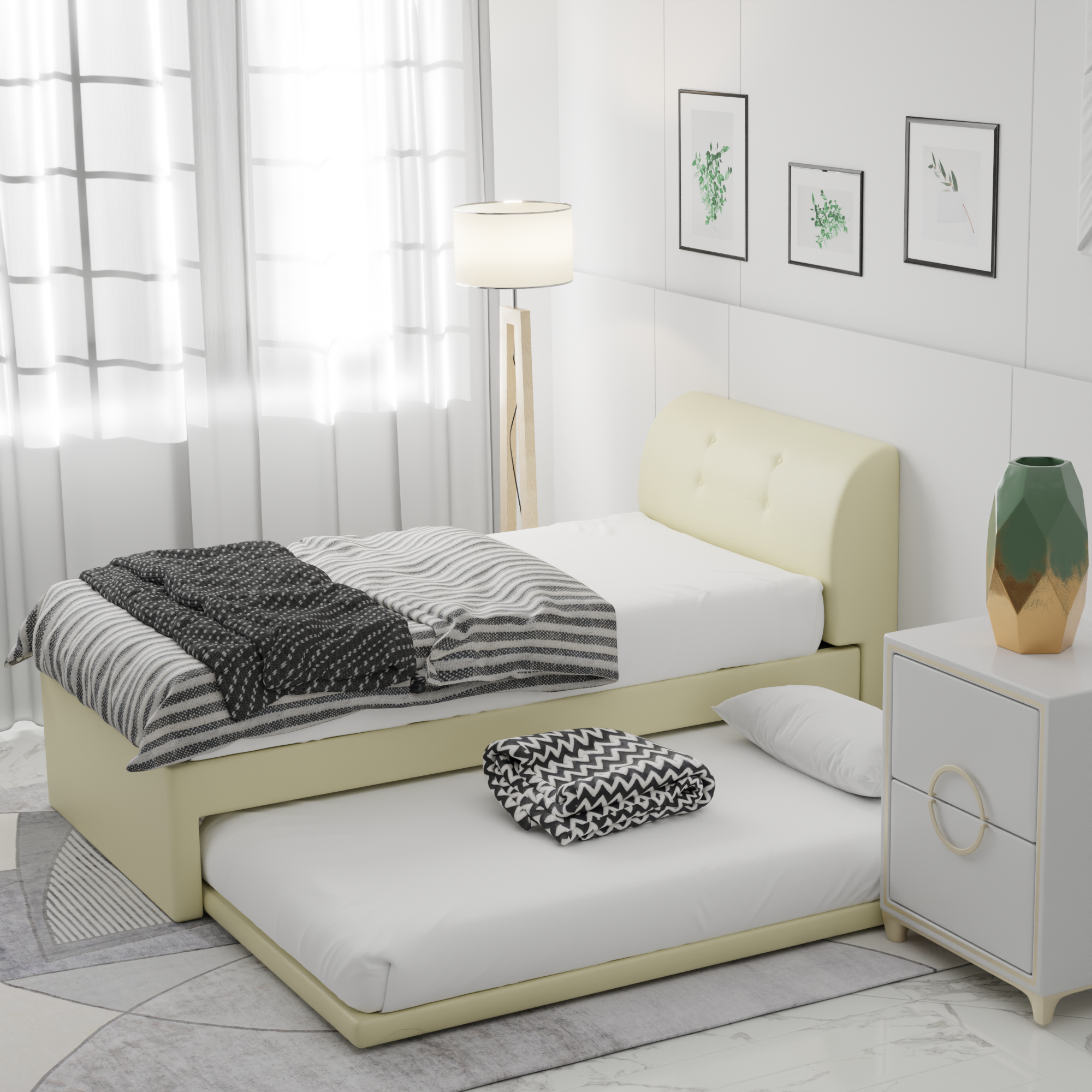 Trundle beds are some of the best solutions to maximise the use of your room. Ideal for guest rooms or shared rooms, this 3 in 1 fabric bed will definitely help you make the most out of your limited space. Made with high-quality fabric, carefully assembled frame, and cushioned headboard.