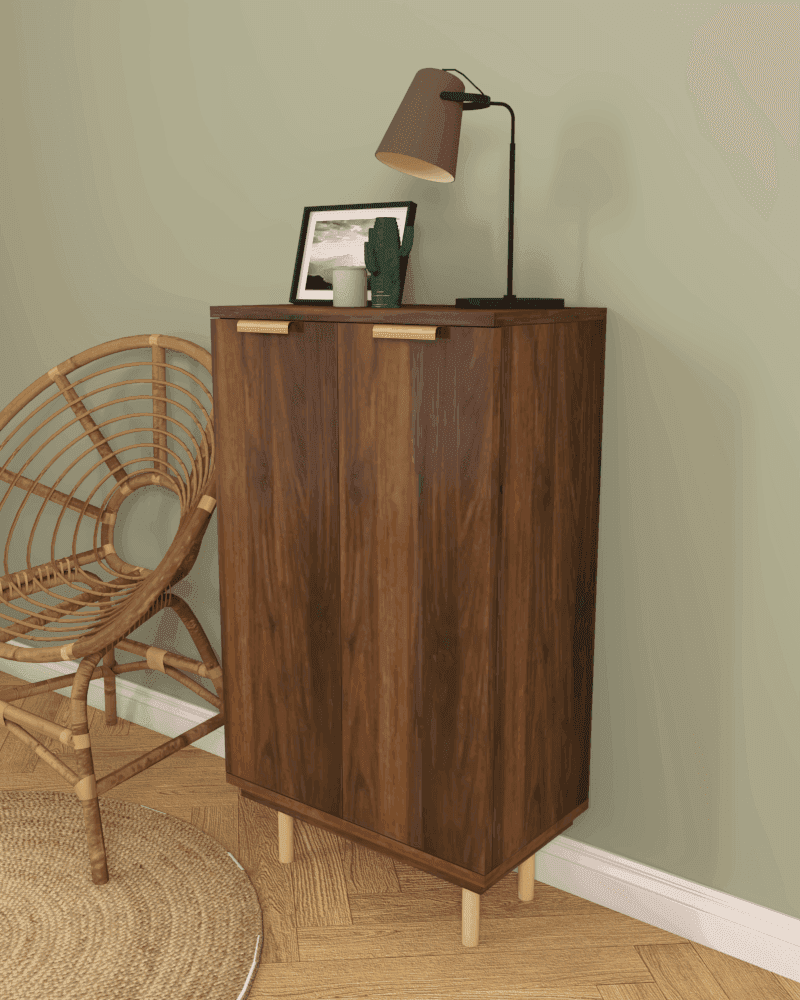 Gone are the days of shoe clutter! With two spacious doors accented with chic gold handles, the Cheyenne 2 Door Shoe Cabinet offers ample storage while adding a touch of elegance to your space. The sleek design means it fits effortlessly into any corner, making it a great choice for large and small spaces.