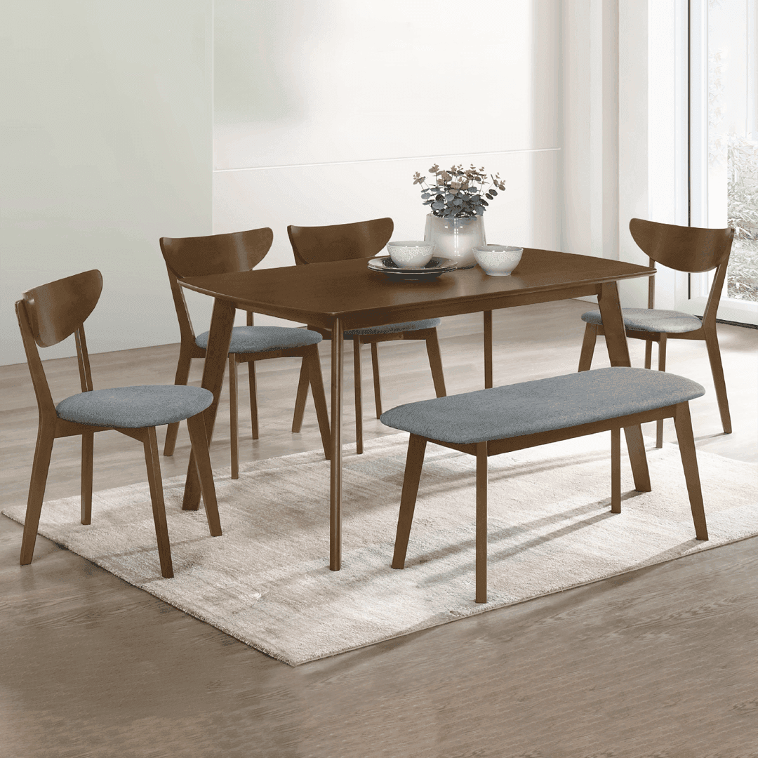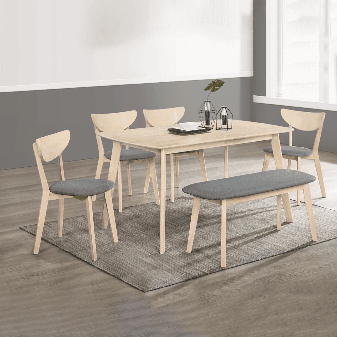 1 Wooden Dining Table + 4 Fabric Dining Chair + 1 Fabric Bench